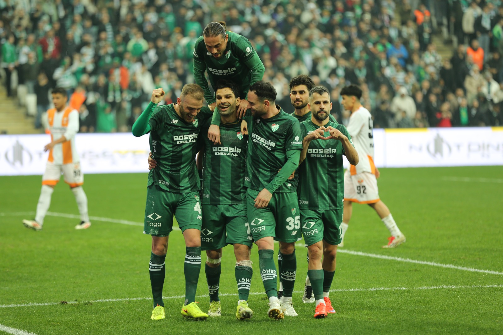 Yaklaşık 35 bin taraftarın izlediği maçta Bursaspor rakibini baştan sona üstün bir futbol ile 6-0 yenerek zirvede şampiyonluk yürüyüşünü sürdürdü.