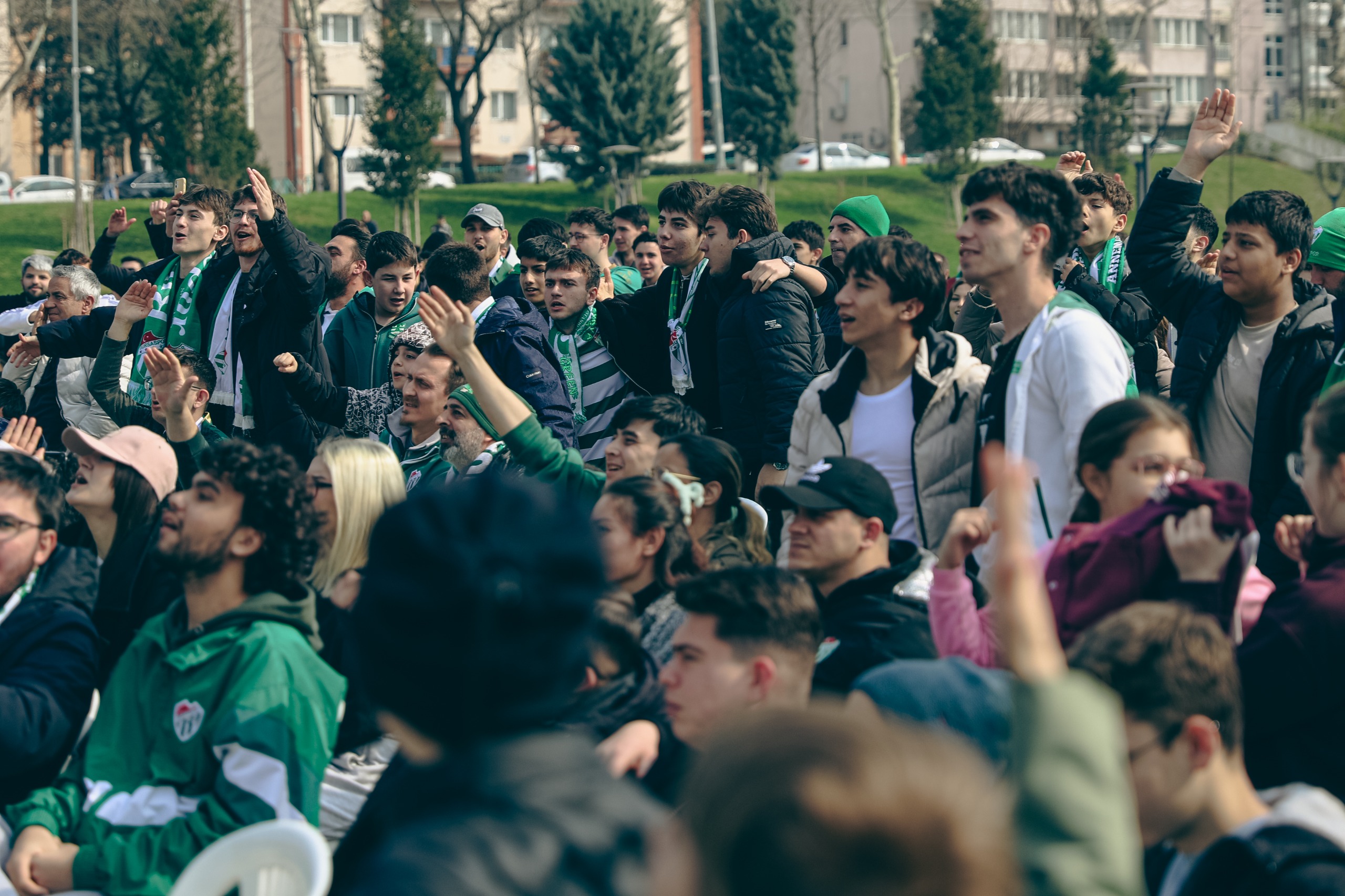 Bursa Büyükşehir Belediyesi de şampiyonluk yolunda yaşanan heyecanın tüm şehirle birlikte paylaşılması amacıyla Kültürpark Eski Atatürk Stadyumu girişi ve Hüdavendigar Kent Parkı’na kurduğu dev ekranlarla taraftarları bir araya getirdi. Bursasporlu taraftarlar, karşılaşmayı dev ekranlardan takip ederek takımlarına destek verdi.
