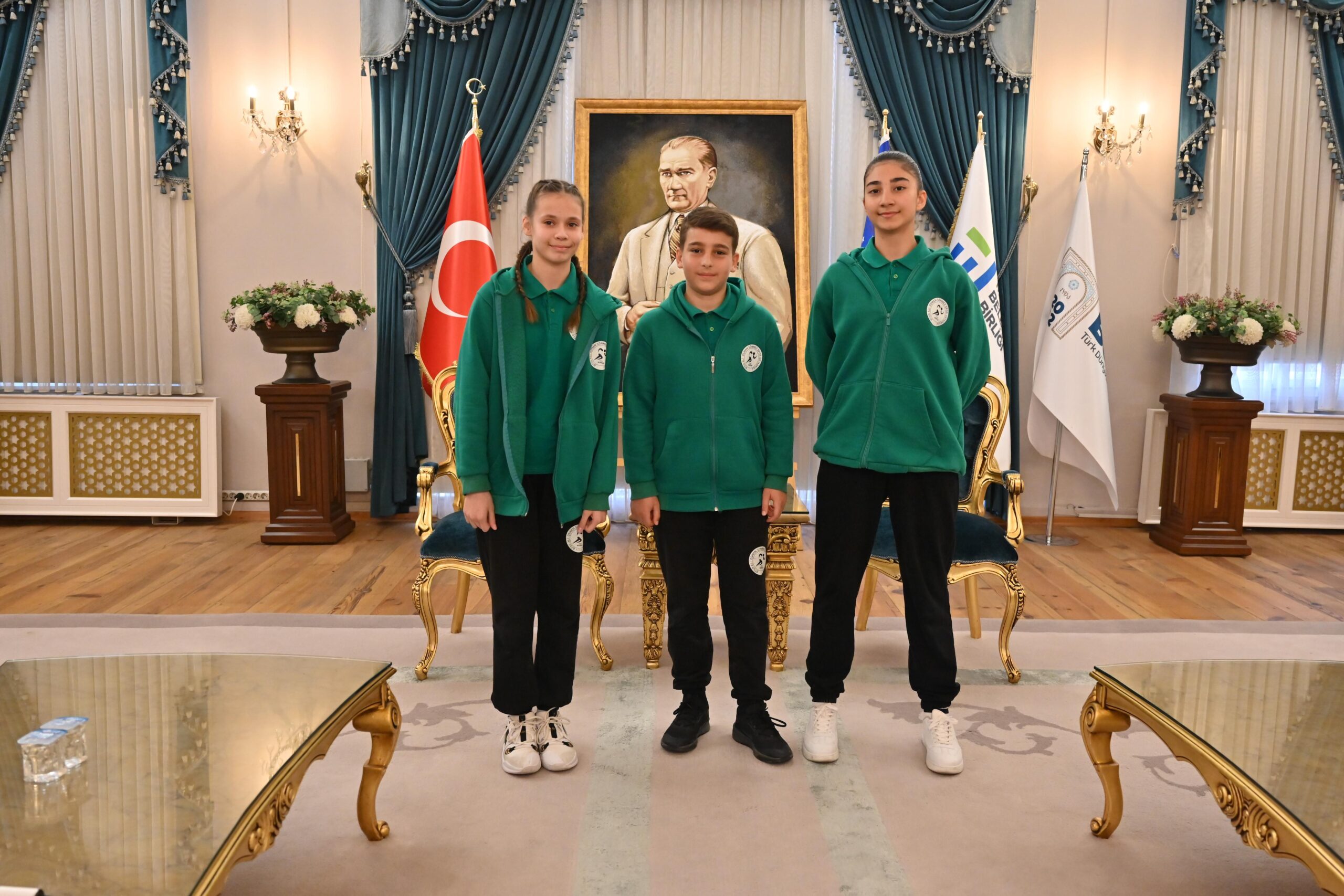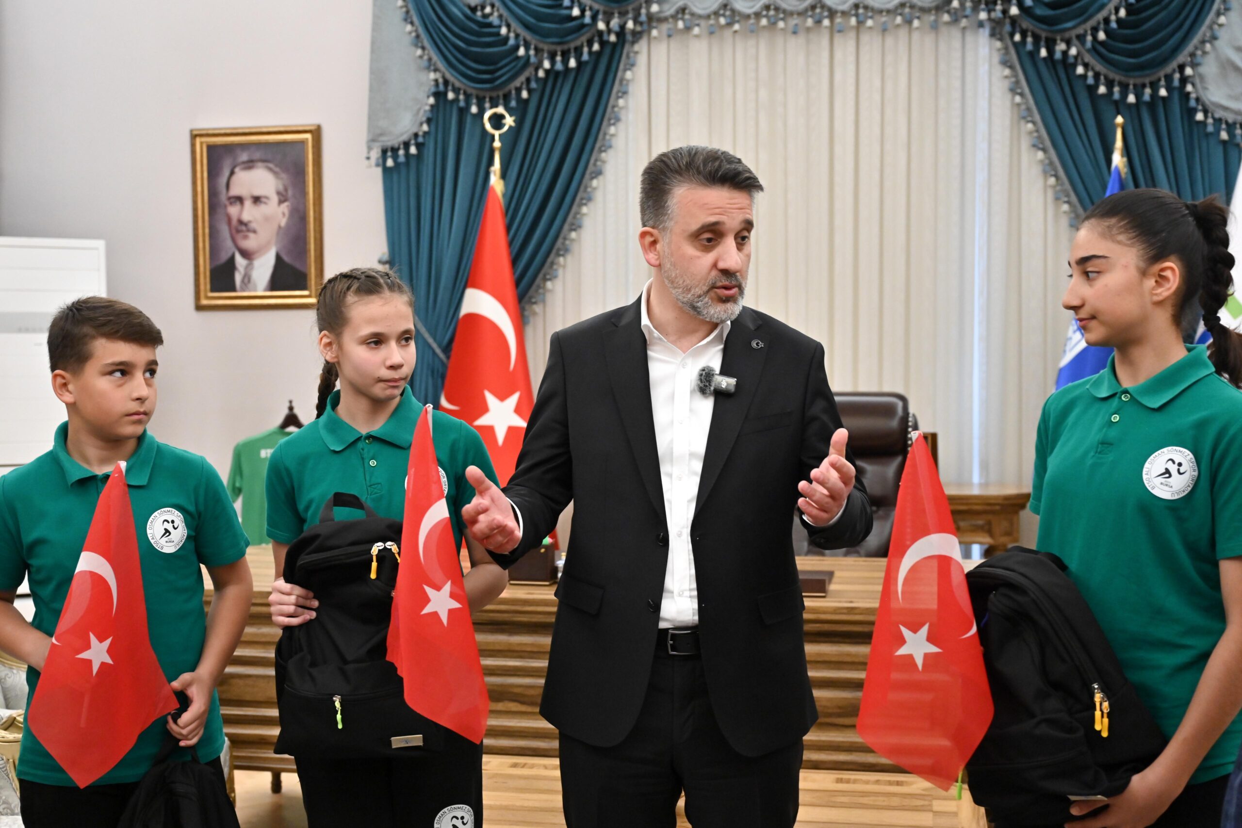 Bursa Büyükşehir Belediye Başkan Vekili Şahin Biba, 23 Nisan Ulusal Egemenlik ve Çocuk Bayramı dolayısıyla koltuğunu BTSO Ali Osman Sönmez Spor Ortaokulu öğrencileri Ömer Akif Avcı, Gökçe Betül Sevinç ve Lina Ravalı’ya devretti.
