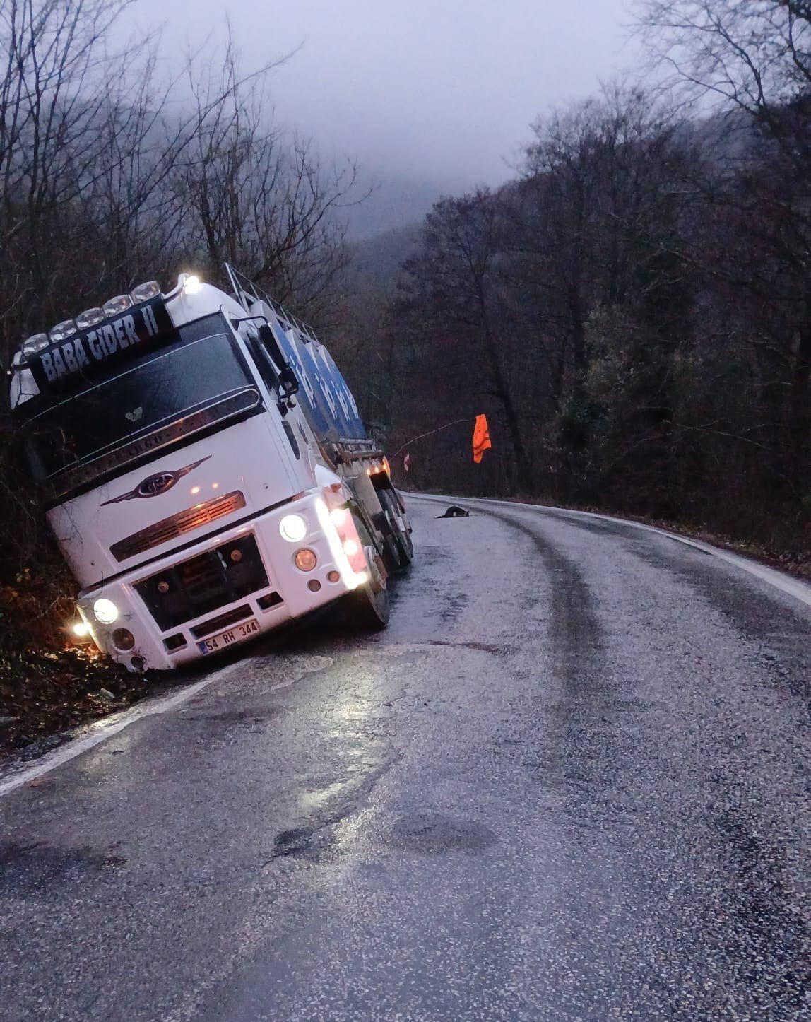 Alınan bilgiye göre, Orhangazi yönüne gitmekte olan süt tankeri, yolun dar olduğu bir noktada sürücüsünün kontrolünden çıkarak yol kenarına savruldu.