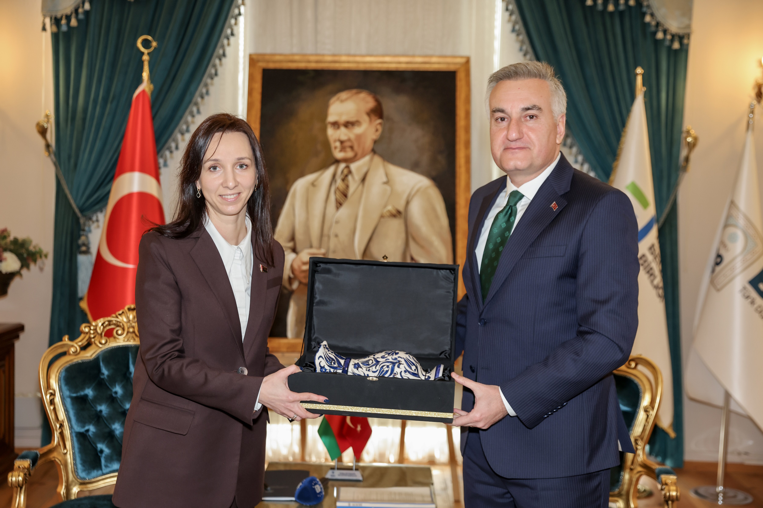 Tarihi Belediye Binası’ndaki ziyarette, Belarus İstanbul Konsolosu İlya Adarchanka ve Belarus Bursa Fahri Konsolosu Zekeriya Aybar Uluca da hazır bulundu. Buluşmada kardeş şehir olan Bursa ile Belarus’un Mogilev kentleri arasındaki ikili ilişkiler ve ortaklaşa yürütülecek projeler ele alındı. 16–19 Mayıs tarihlerinde gerçekleştirilecek Uluslararası Bursa Spor Festivali kapsamındaki U16 Kız Basketbol Turnuvası’na Mogilev’den bir takımın da katılacağı dile getirildi.