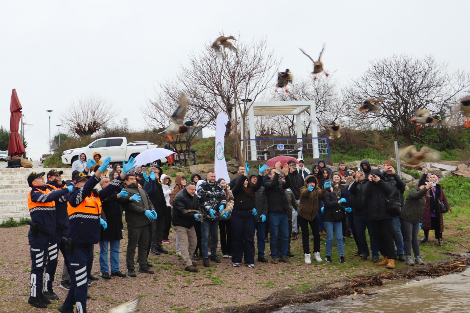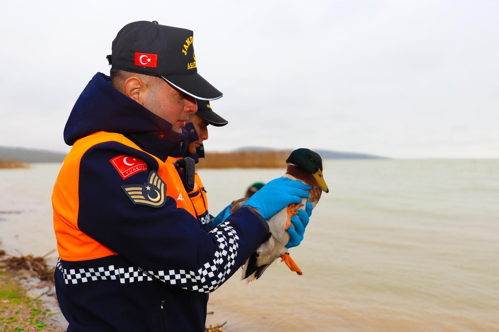 Sağlık durumları kontrol edilen ördekler,Nilüfer Jandarma Asayiş Bot Komutanlığı ve Bursa Doğa Koruma ve Milli Parklar Müdürlüğü ekiplerince yeniden Uluabat Gölü’ne bırakıldı.