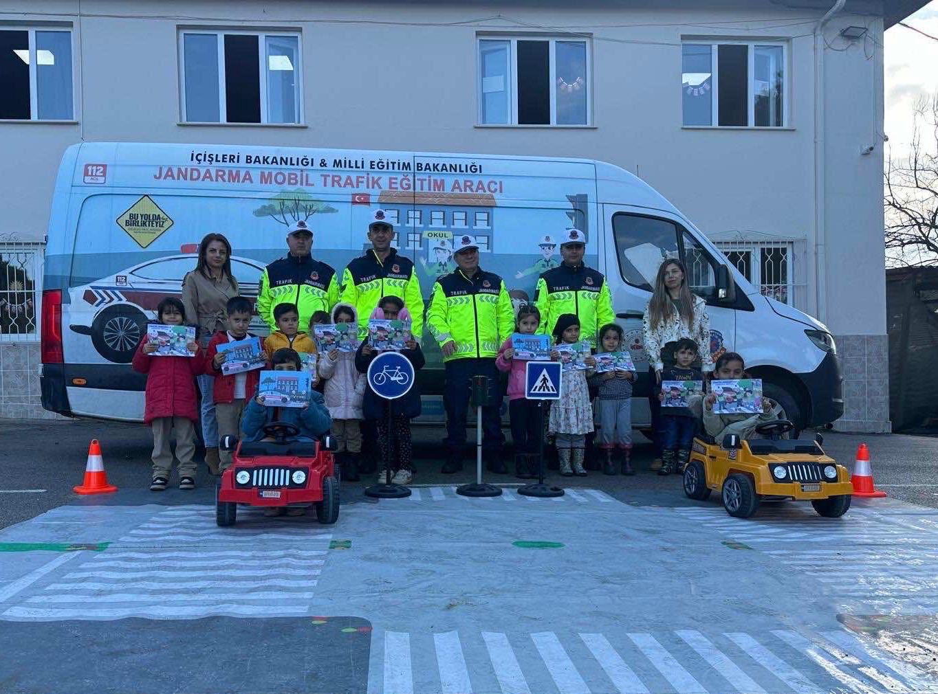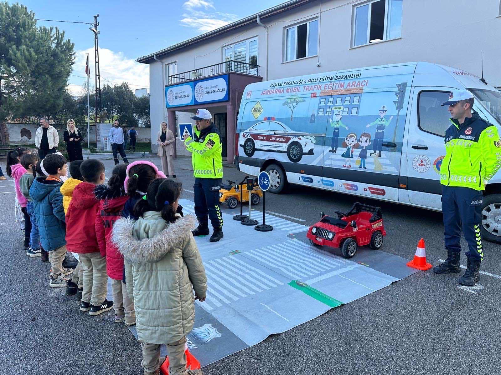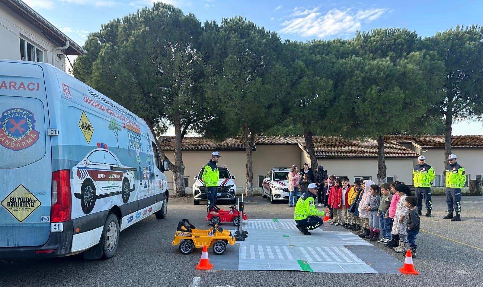 Okullarda öğrencilerle bir araya gelen jandarma ekipleri, eğitim çalışmalarında okul bahçesinde ve sınıflarda düzenlenen etkinliklerde trafik kuralları, emniyet kemerinin önemi, yaya geçitlerinin kullanımı ve trafik ışıklarının anlamı öğrencilere oyunlar eşliğinde anlattı.
