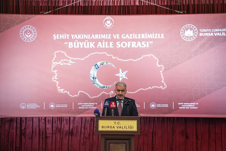 Bursa Valiliği tarafından aziz şehitlerimizin kıymetli emanetleri ve kahraman gazilerimiz onuruna “Şehit Yakınlarımız ve Gazilerimizle Büyük Aile Sofrası” iftar programına Kültürpark Sadabad Sarayı’nda gerçekleştirildi. Bursa Valisi Erol Ayyıldız, katılan tüm şehit yakınlarını ve gazileri selamlayarak Ramazan ayının birlik, beraberlik ve dayanışma ruhunu pekiştiren önemli bir ay olduğunu ifade etti.