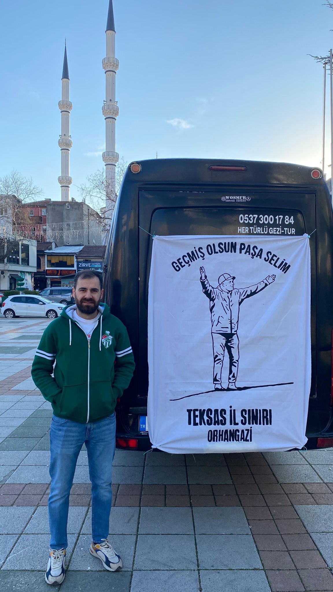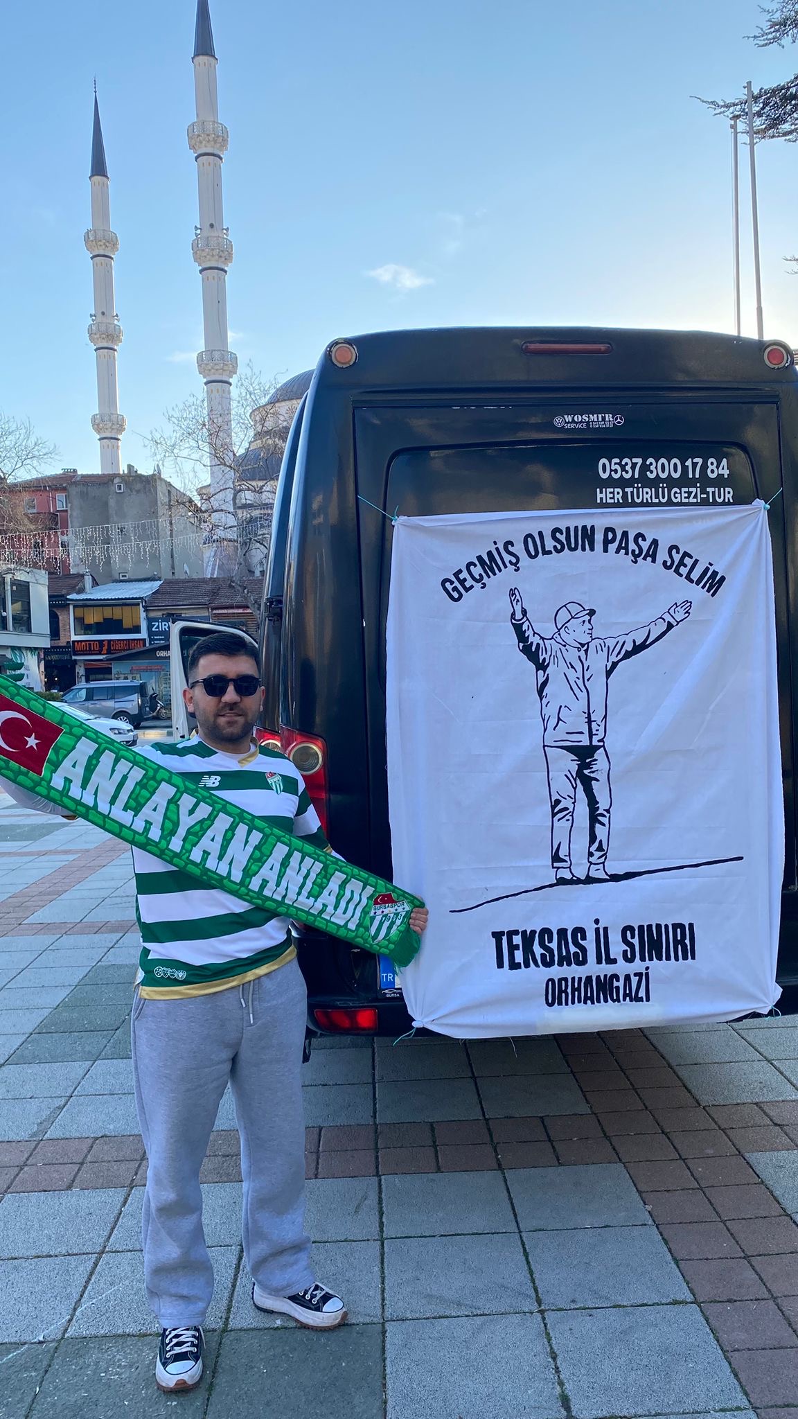 Öte yandan deplasman için yola çıkan araçların arkasına, geçtiğimiz günlerde hastalığı nedeniyle tedavisine başlanan BursasporTeksas Tribün Lideri Paşa Selim lakaplı Selim Kurtulan için pankart asıldı.