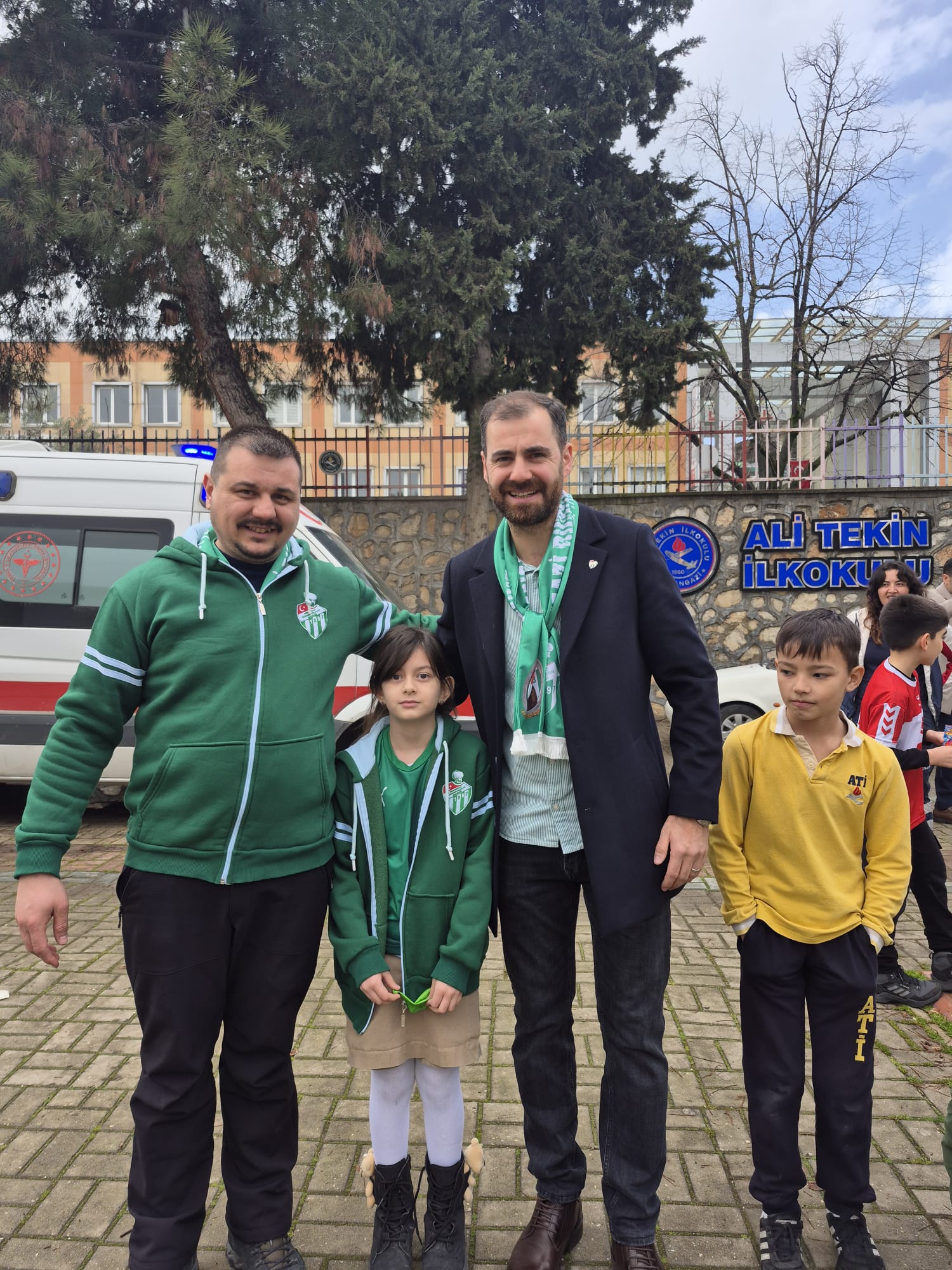 Bursa İl Milli EÄŸitim Müdürlüğü tarafından alınan kararla, her ayın 16’sı “Bursa Spor Günü” olarak ilan edilmiÅŸti. Proje kapsamında ise Orhangazi ilçesinde Bursasporlular derneÄŸi bu kez  ziyaret ettikleri Ali Tekin ilkokulundna öğrenciler ile bir araya geldi. Burada YeÅŸil Beyazlı formalarını giyerek dernek yönetimiyle bir araya gelen öğrenciler renkli görüntüler oluÅŸturdu.