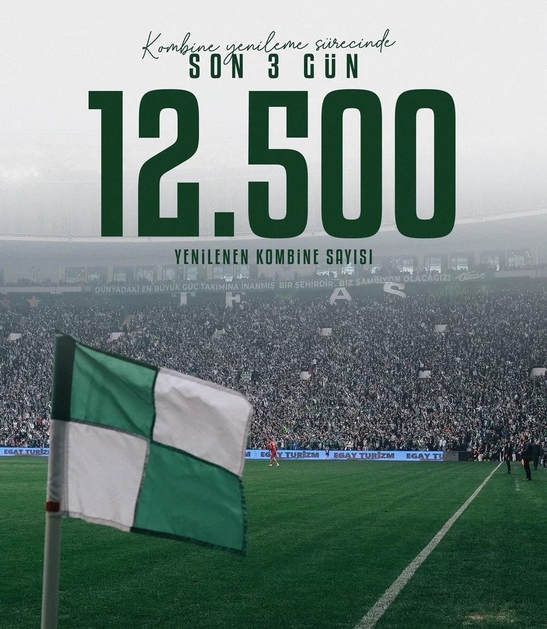 Yoğun ilgi gören süreçte taraftarlar, mevcut koltuklarını koruyabilmek için son günlere girerken harekete geçti. Kombine yenileme işlemleri 17 Nisan’da sona erecek. Yenileme sürecinin tamamlanmasının ardından gözler genel satışlara çevrilecek. Bursaspor, 20 Nisan – 10 Mayıs tarihleri arasında genel kombine satışlarının yapılacağını duyurdu.