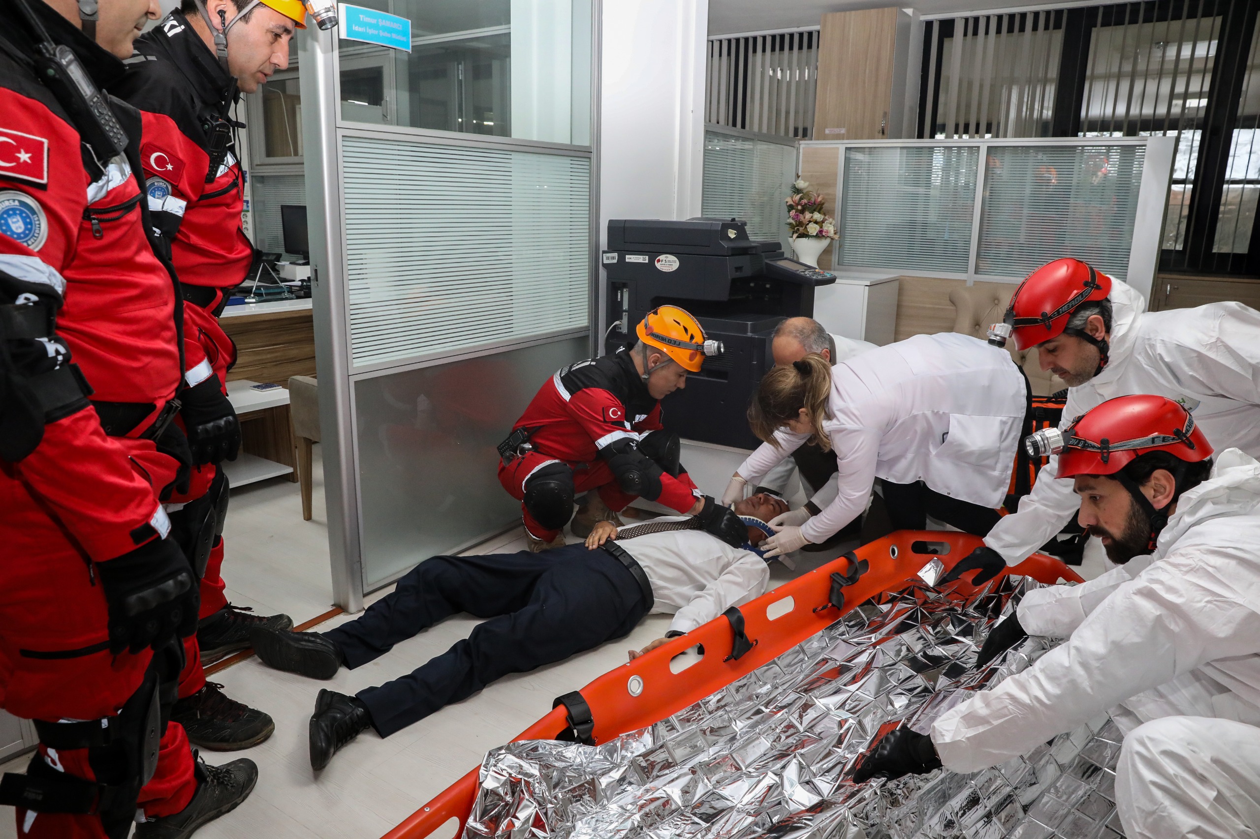 BUSKİ Genel Müdürlüğü binasında yapılan tatbikatta, deprem ve yangın anında izlenmesi gereken adımlar aşamalı olarak uygulandı. Senaryo gereği binanın hızlı ve güvenli bir şekilde tahliyesi sağlanırken, BUSKİ Arama Kurtarma Ekibi uzman kadrosuyla sahada görev aldı. Tatbikat kapsamında yangın kaynaklı olası gaz sızıntıları ekiplerce kontrol altına alınırken, yaralı personelin tahliye işlemleri de gerçeğe uygun şekilde canlandırıldı.