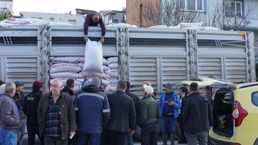 Büyükşehir Belediyesi’nin üreticilere desteği sürüyor! Bu kez 200 çuval yem dağıtıldı…
