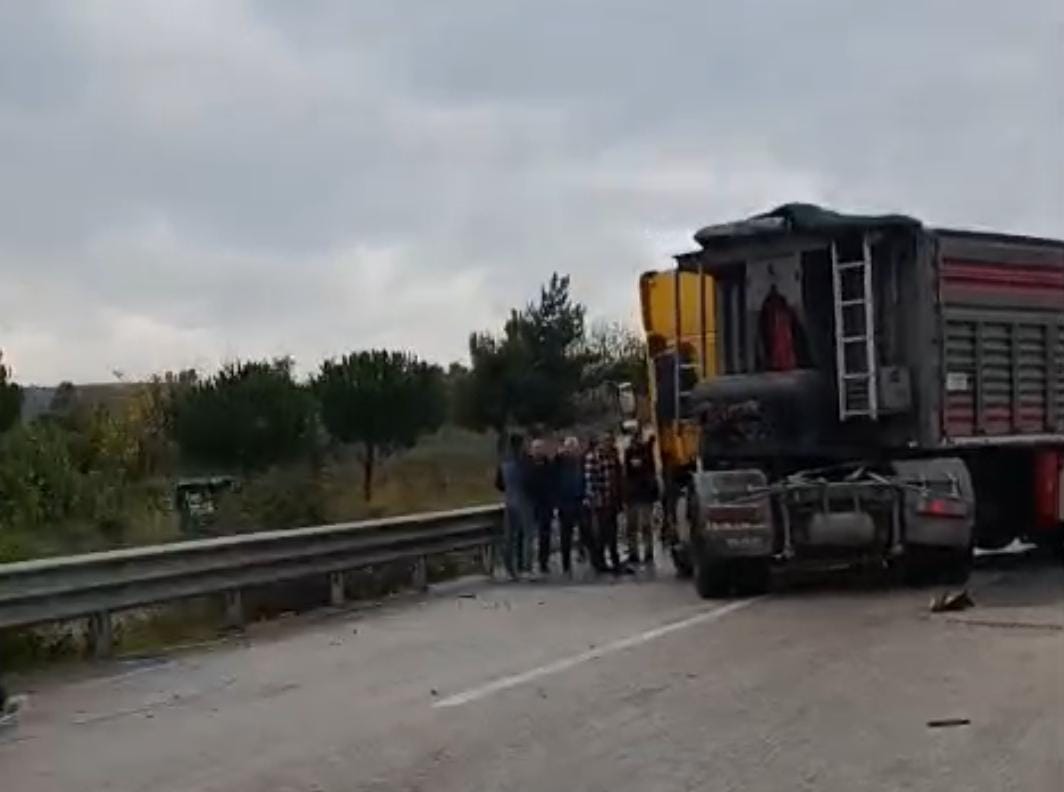 Alınan bilgilere göre Yalova yönüne gitmekte olan bir tır, iddialara göre yağış nedeniyle kayganlaşan yolda kontrolden çıkarak makasladı ve bariyerlere çarptı.