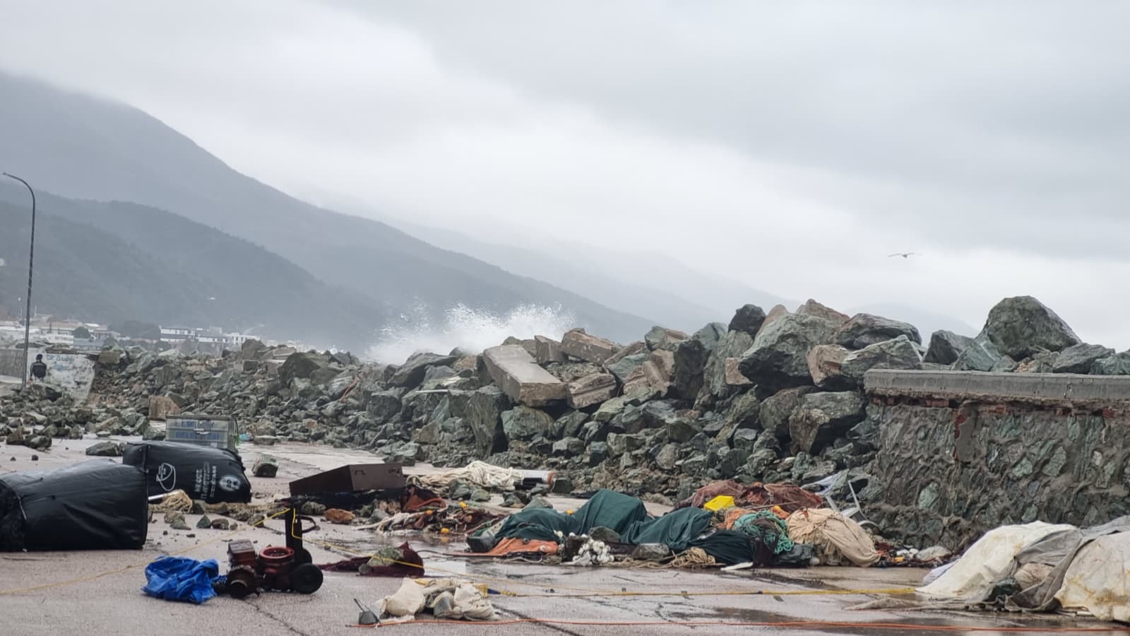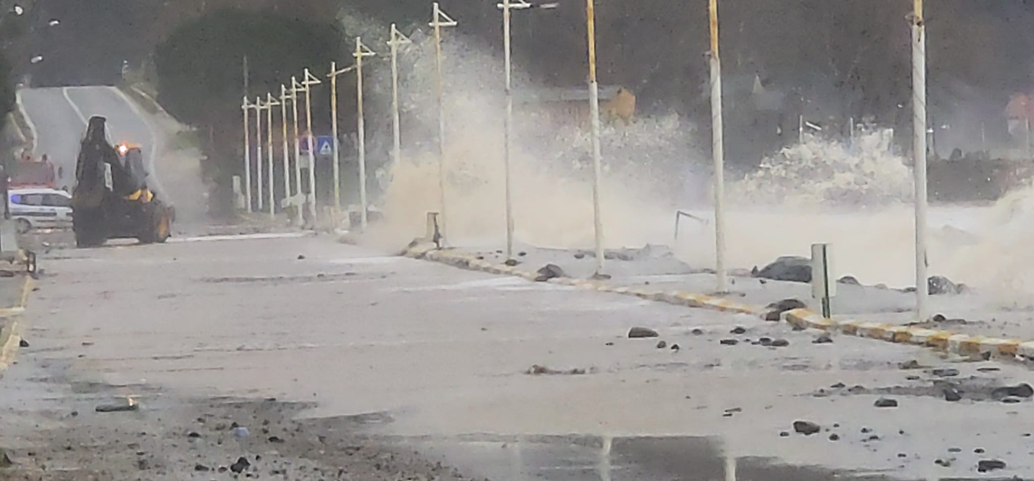 Deniz taşkınıyla birlikte su altında kalan sahil yolunda ve balıkçı barınaklarında büyük çaplı maddi hasar oluştu. Kıyı şeridinde yer alan bazı yapıların duvarları ve çevre düzenlemeleri dev dalgalara dayanamayarak yıkıldı.