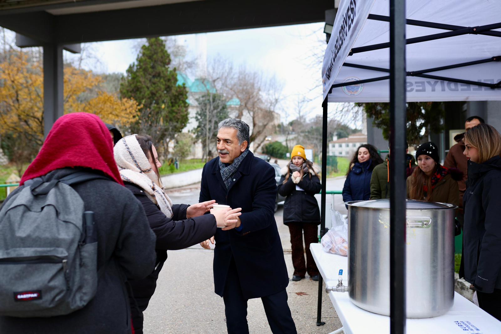 Gemlik Belediyesi, Türk Kızılayı iş birliğiyle Uludağ Üniversitesi Asım Kocabıyık Yerleşkesi önünde üniversite öğrencileri ile kampüs çevresindeki lise öğrencilerine sıcak çorba ikramında bulundu.