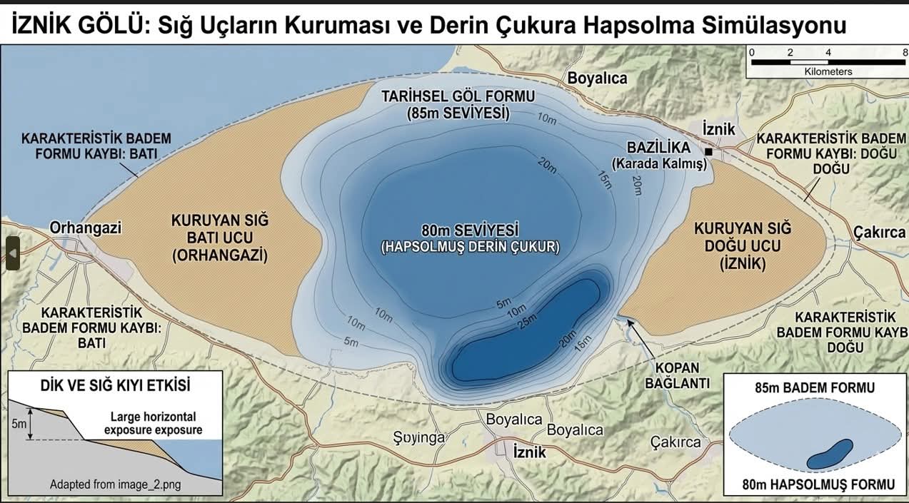 Yapılan son analizler, İznik Gölü’ndeki çekilmenin boyutlarını gözler önüne serdi.
