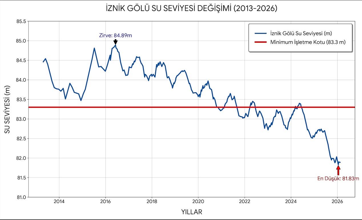 Türkiye’nin beşinci büyük doğal gölü olan İznik Gölü, tarihinin en zorlu döneminden geçiyor. Uzmanlar, gölün su seviyesindeki düşüşün ardından ekolojik bir “kırılma noktası”na gelindiği ve gölün adeta “yoğun bakım” evresine girdiği uyarısında bulunuyor.