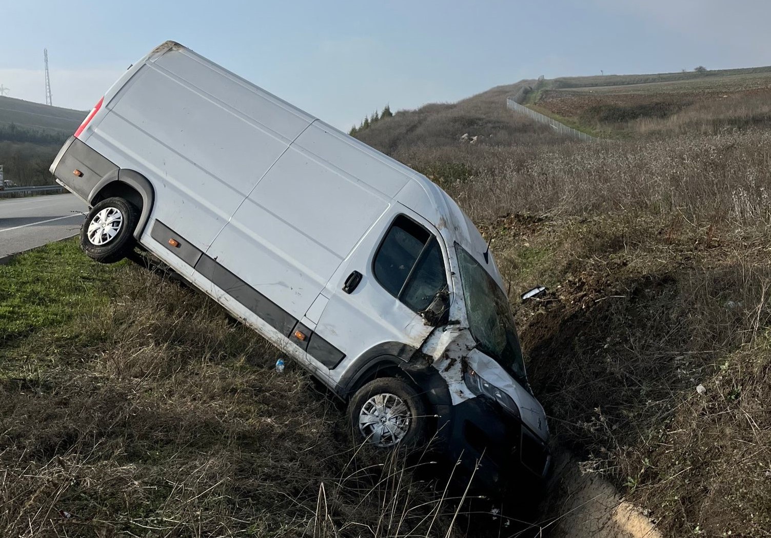 Bursa’da ,İzmir otoyolu üzerinde meydana gelen trafik kazasında, kontrolden çıkan kapalı kasa kamyonet yol kenarında ki sulama kanalına çarptı. Kazada, araç içinde bulunan iki kişi hafif yaralandı.