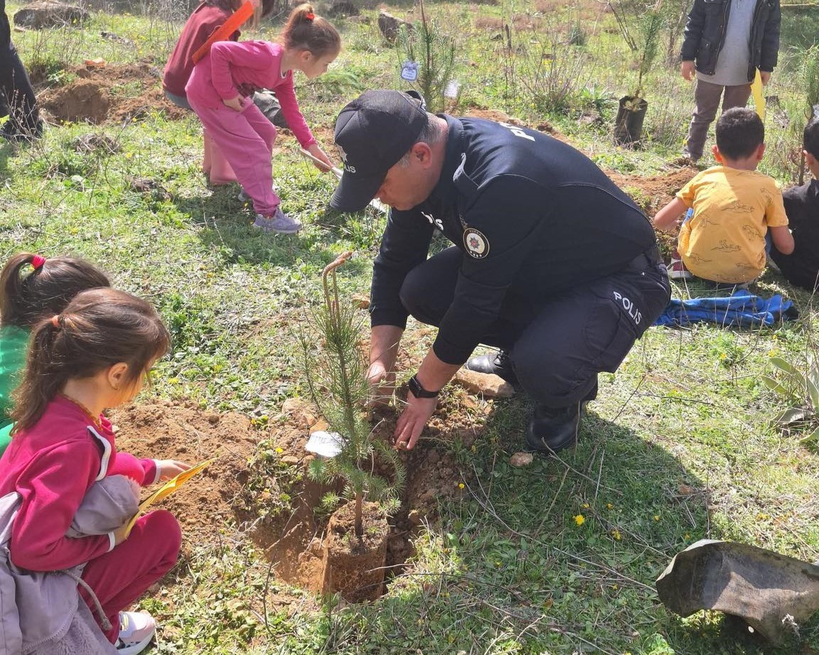 Renkli görüntülere sahne olan etkinlikte, minik öğrenciler polis ekipleriyle birlikte fidanları toprakla buluşturdu. Çocukların heyecanı ve polis ekiplerinin desteğiyle gerçekleşen fidan dikimi, hem eğlenceli hem de öğretici anlara sahne oldu.