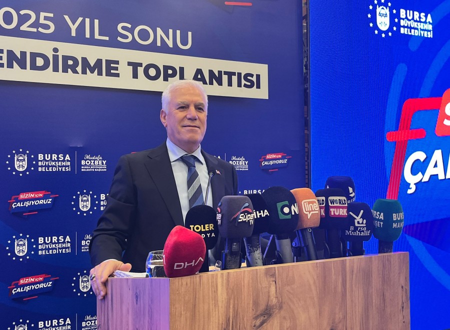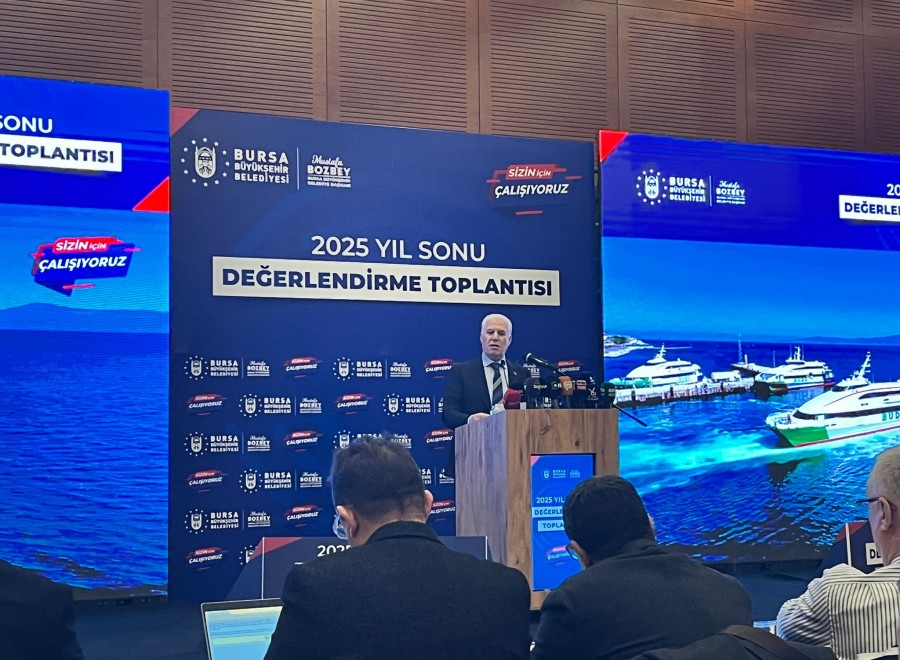 Bursa Büyükşehir Belediyesi’nin “2025 Yıl Sonu Değerlendirme Toplantısı” gerçekleştiriliyor. Bursa Büyükşehir Belediyesi tarafından düzenlenen toplantı, Atatürk Kültür Merkezi Merinos Yerleşkesi Hüdavendigar Salonu’nda yapıldı. Toplantıda, 2025 yılı içerisinde belediye ve iştirakler tarafından yürütülen çalışmalar kapsamlı bir sunumla kamuoyuyla paylaşılıyor.