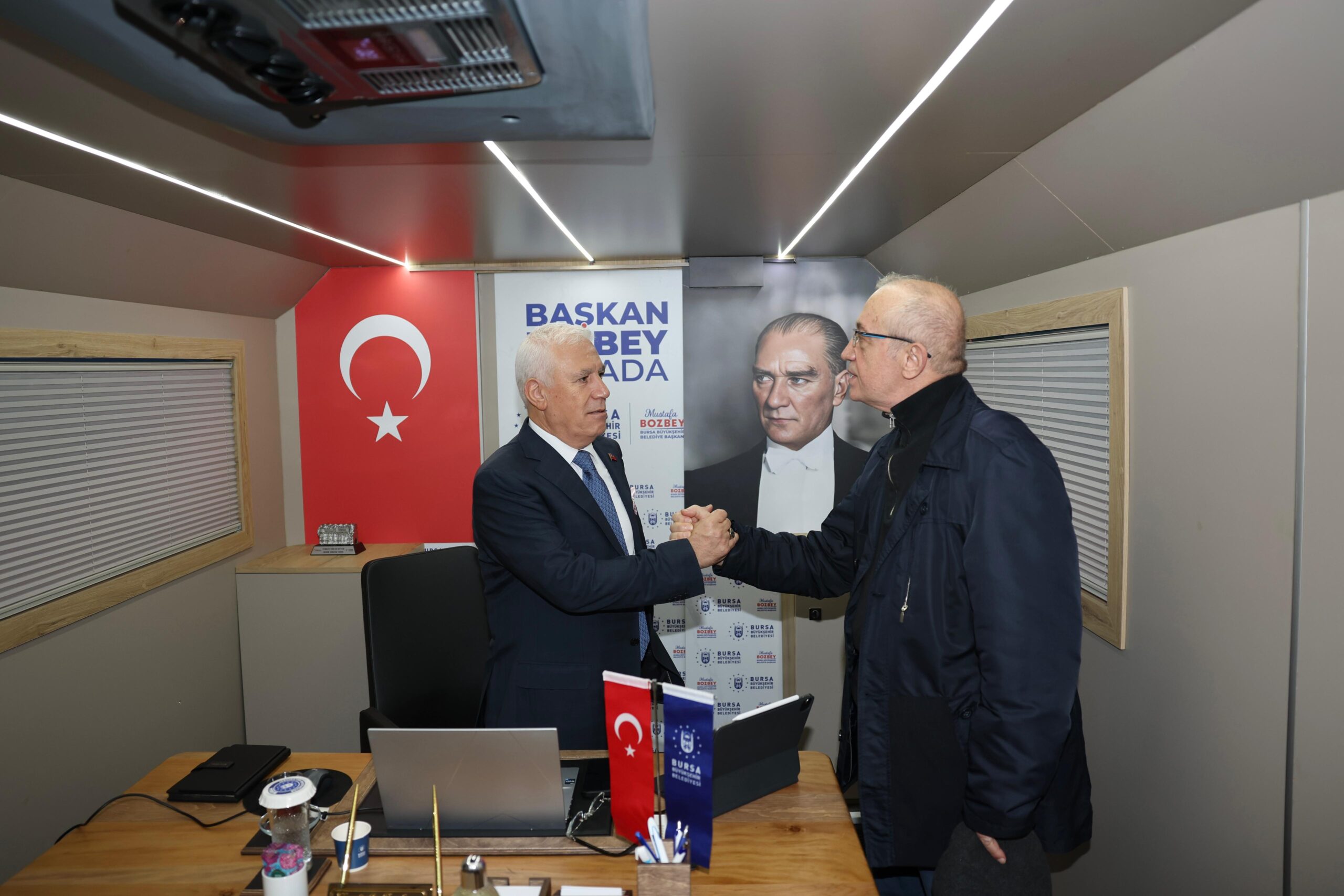 ‘Başkan Bozbey Burada’ programı kapsamında muhtarlarla da bir araya gelen Başkan Mustafa Bozbey, mahallelerin sorunlarını, ihtiyaçlarını ve muhtarların taleplerini dinledi. Buluşmada, bir önceki ‘Başkan Bozbey Burada’ programında dile getirilen taleplerin hangi aşamaya geldiği de değerlendirildi. İlçeye kazandırılacak olan terminal ve meydan alanı projelerinin görüşüldüğü Orhangazi Şoförler ve Otomobilciler Odası ziyaretinde ise projelerin odaya ve üyelerine sunacağı katkılar konuşuldu. Program kapsamında Orhangazi Muhtelif Esnaf ve Sanatkarlar Odası’na da uğrayan Başkan Bozbey, esnafın sorunlarını, taleplerini ve önerilerini dinleyerek çözümler önerilerini paylaştı. Orhangazi Ziraat Odasını da ziyaret ederek çiftçilerin sorunlarını ve taleplerini dinleyen Başkan Mustafa Bozbey, tarımın gelişmesi için üreticilerle fikir alışverişinde bulundu. Program kapsamında Orhangazi Ticaret ve Sanayi Odası’nı da ziyaret ederek sanayicileri dinleyen Başkan Bozbey, ziyaretlerin ardından Cumhuriyet Meydanı’nda vatandaşların talep ve önerilerini dinledi. Alanda bulunan Sağlık Otobüsü vatandaşların muayenesini ücretsiz yaparken, iş arayanlar da Bursa İş Ofisi standında forum doldurma imkanı buldu.