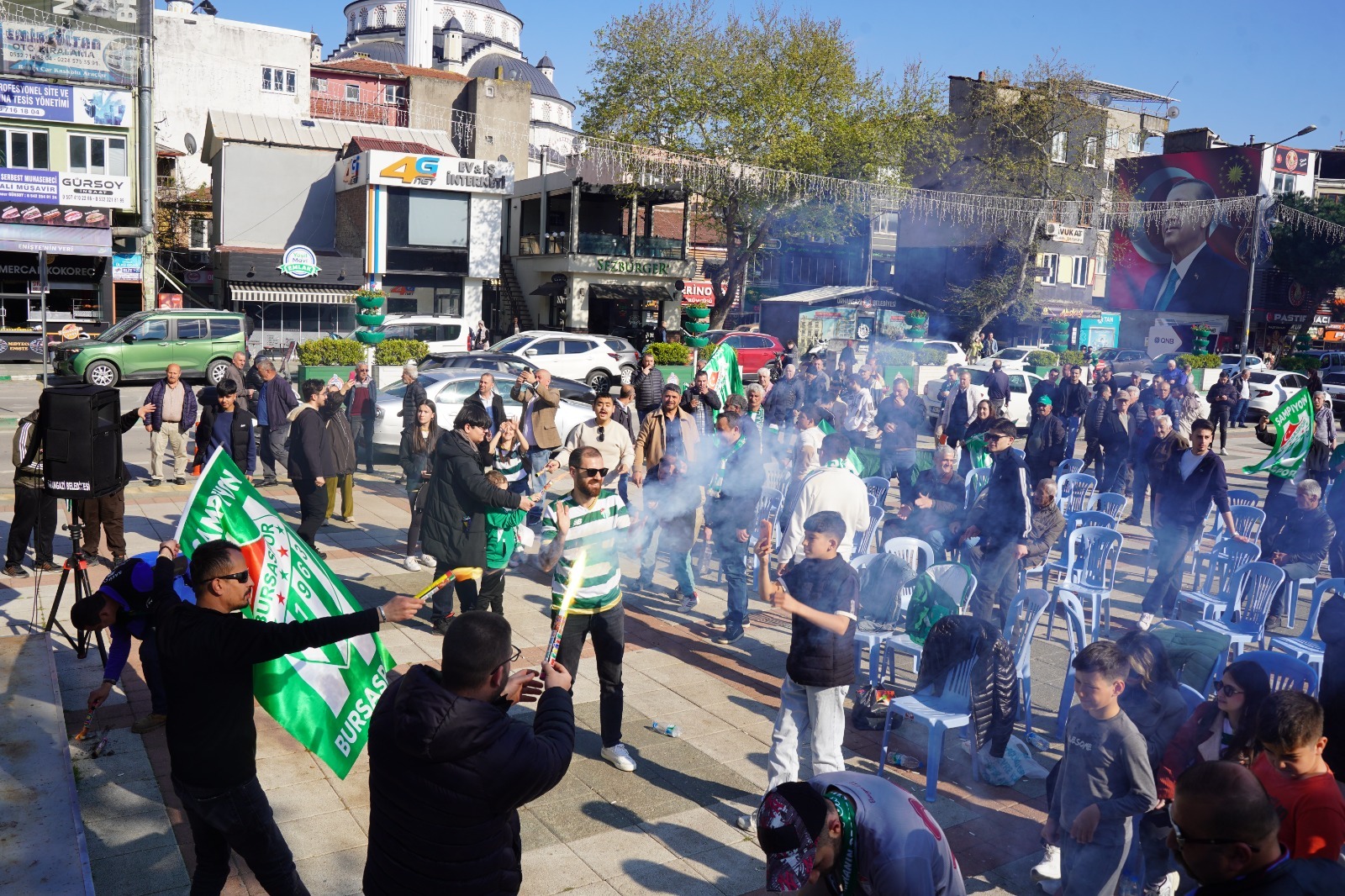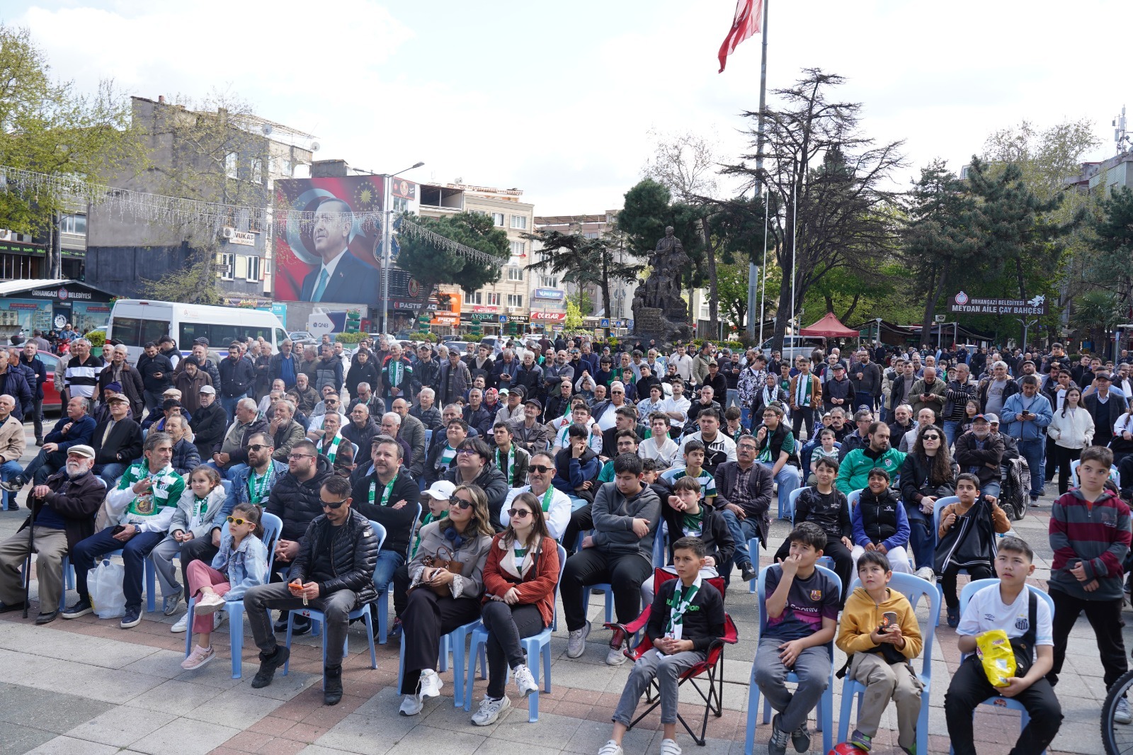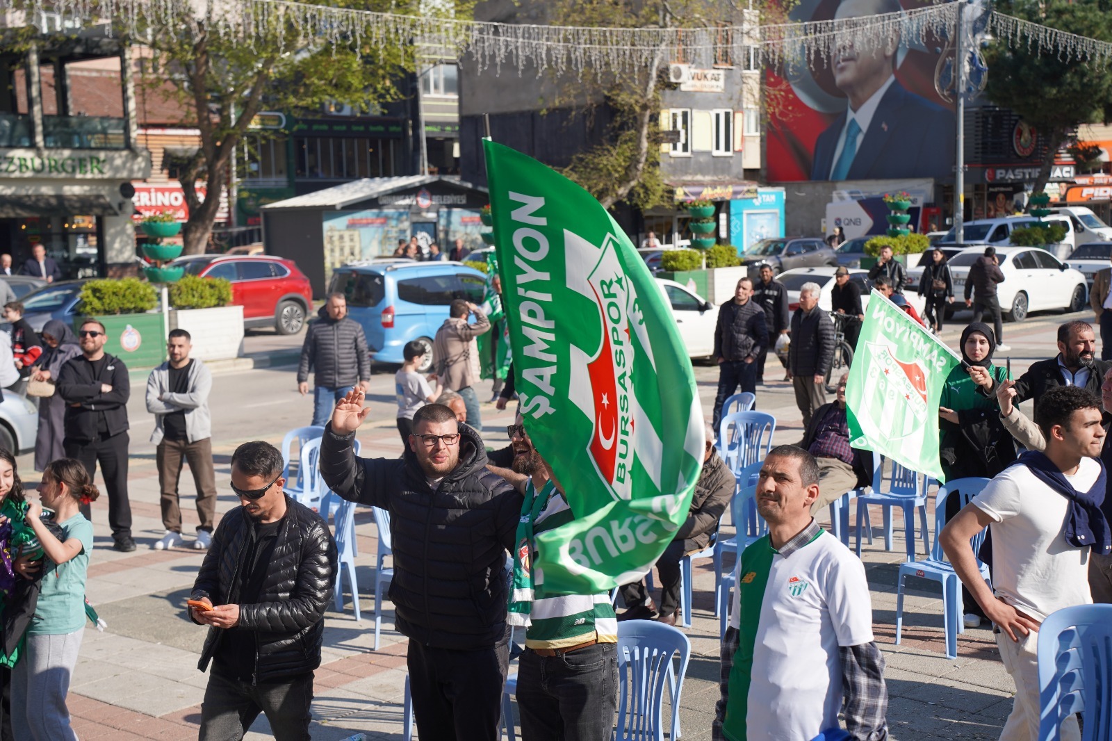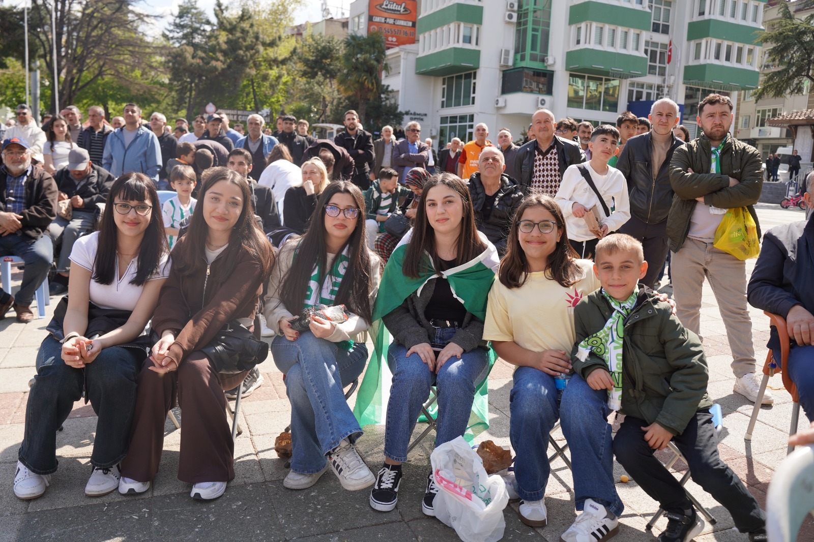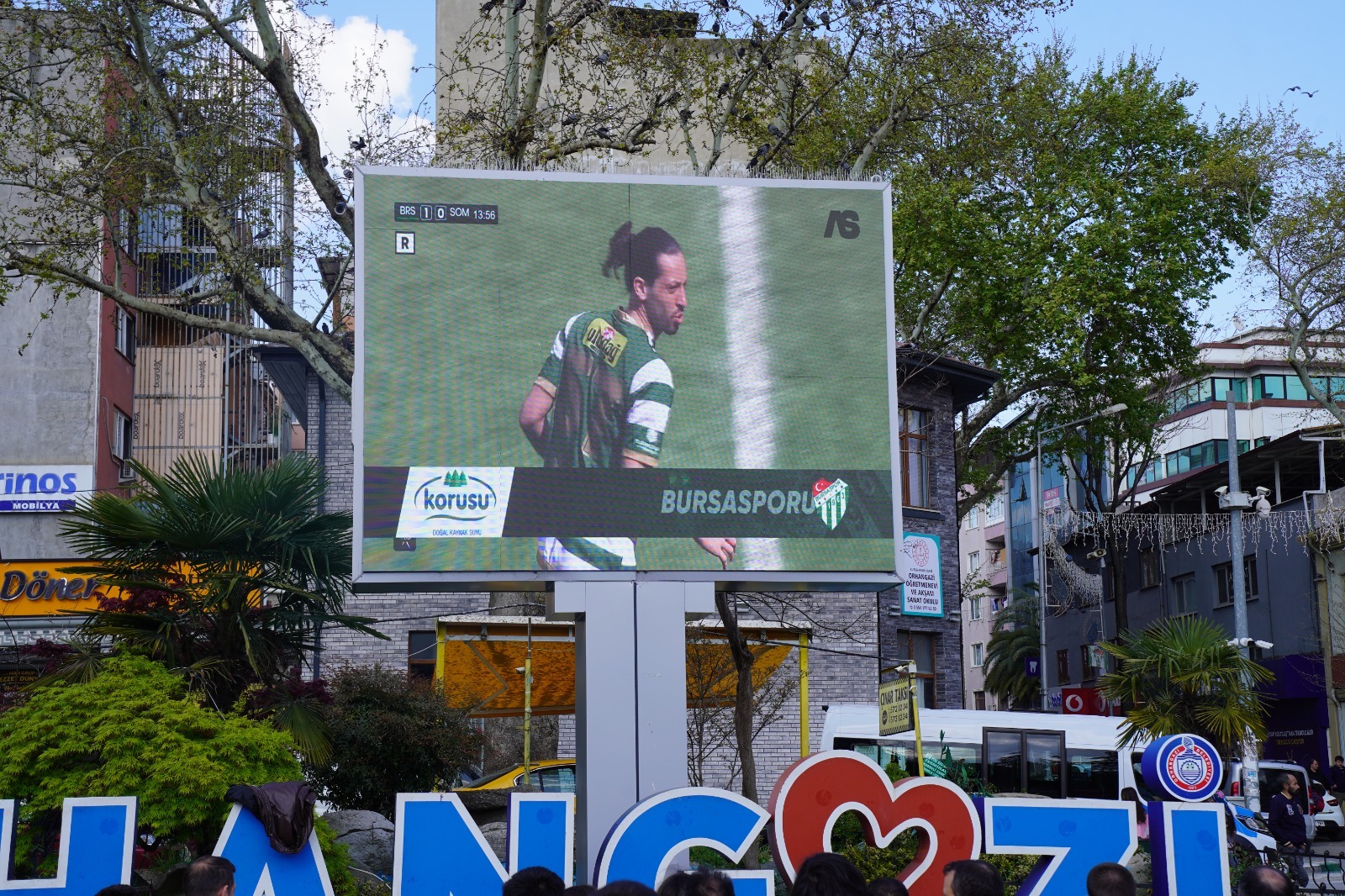 Orhangazi’de onlarca vatandaş Bursaspor’un şampiyonluk maçını izlemek için bir araya geldi. Cumhuriyet alanında ki ekrandan maçı takip eden vatandaşlar, maçın bitiş düdüğü ile birlikte kutlamalara başladı.