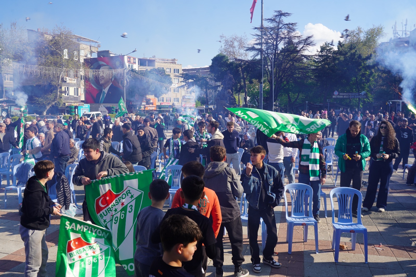 Kentte büyük bir sevince dönüşen Bursaspor’un şampiyonluğu 7’den 70’e herkes tarafından coşku ile kutlanırken, vatandaşlar meydanda meşale ve tezahüratlar ile Bursaspor’un şampiyon olmasını kutladı. Kutlamalar esnasında ortaya renkli görüntüler çıktı.