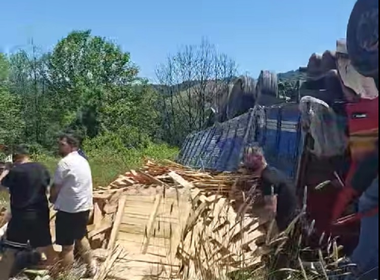Alınan bilgilere göre Orhangazi’den Yalova yönüne gitmekte olan kereste yüklü kamyon virajda sürücünün kontrolünden çıkarak yol kenarına devrildi.