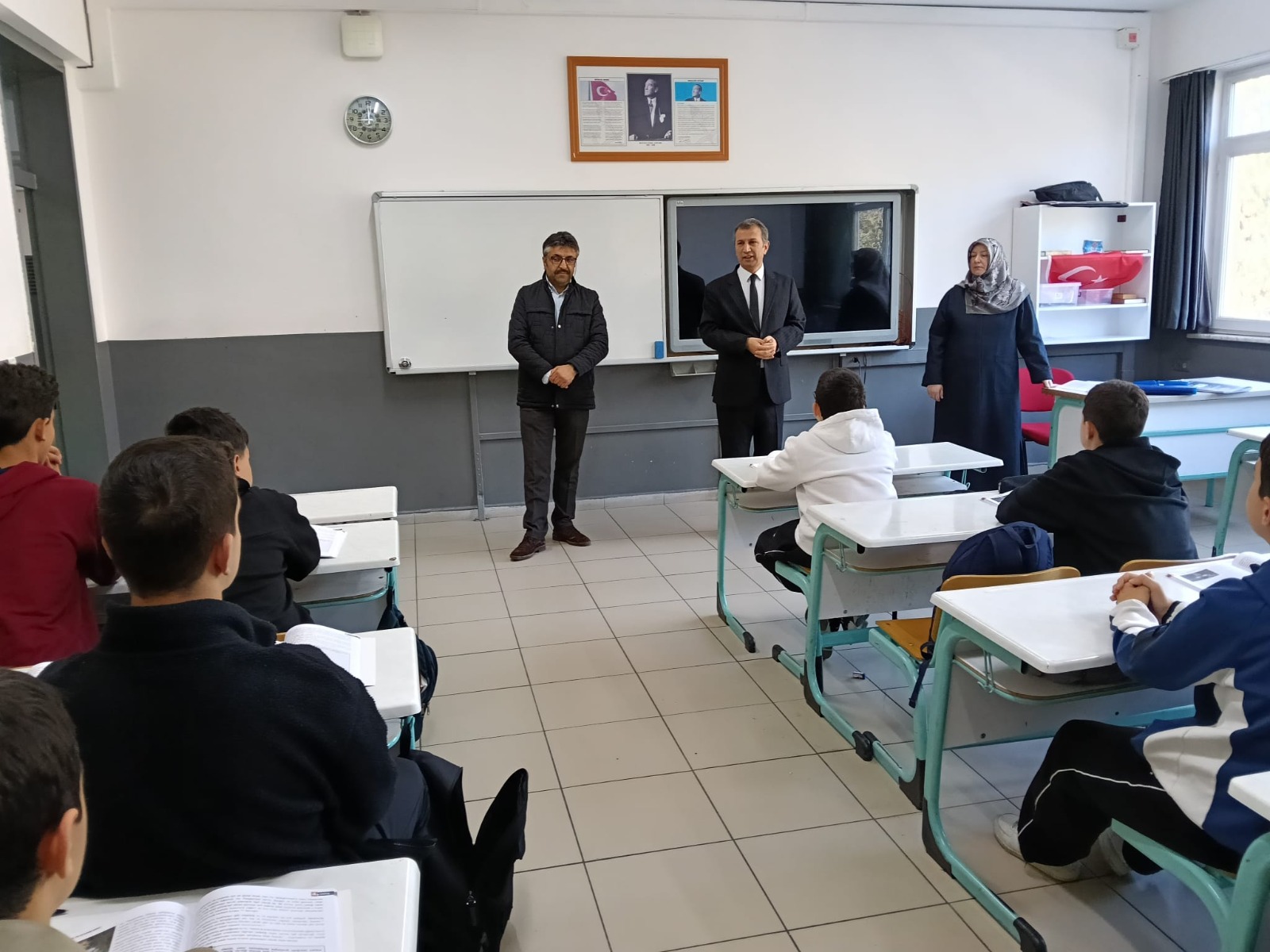 Orhangazi İmam Hatip Ortaokulu’ndaki bayrak törenine katılan İlçe Milli Eğitim Müdürü Erol Şanlıtürk, öğrenci ve öğretmenlerle bir araya geldi.