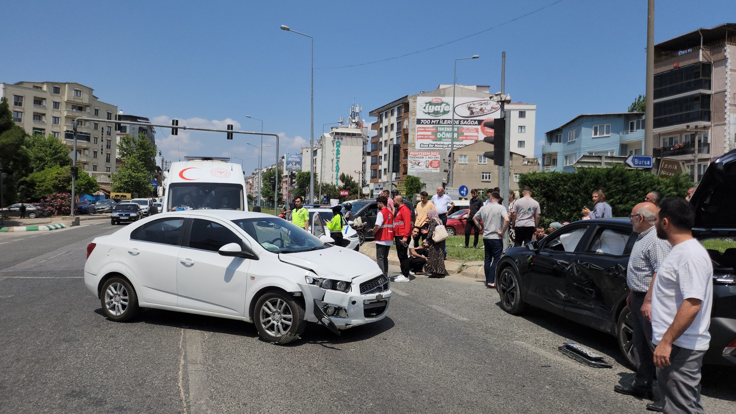 Orhangazi’de İznik ışıklı kavşağında iki otomobil çarpıştı! 2 yaralı…