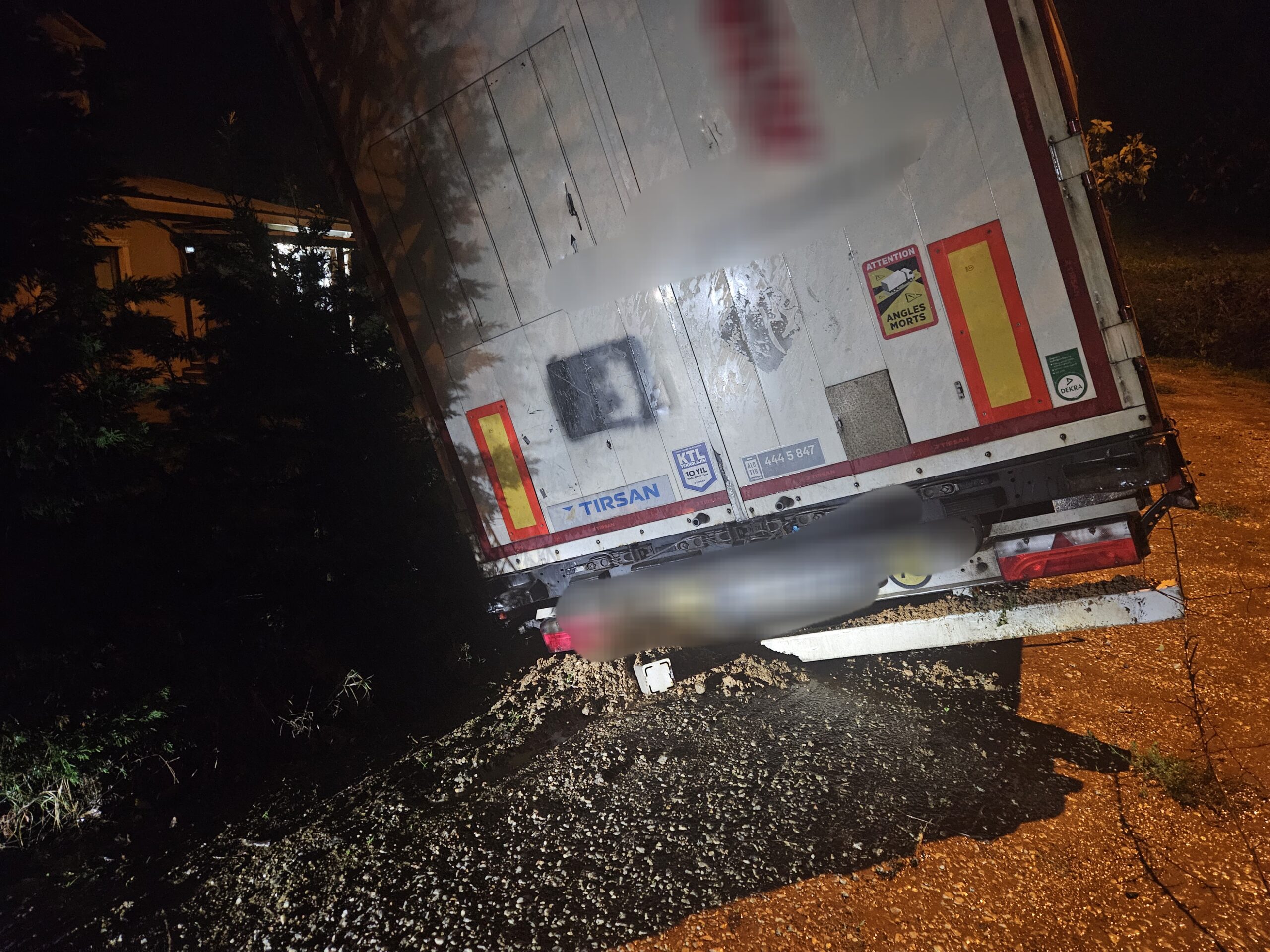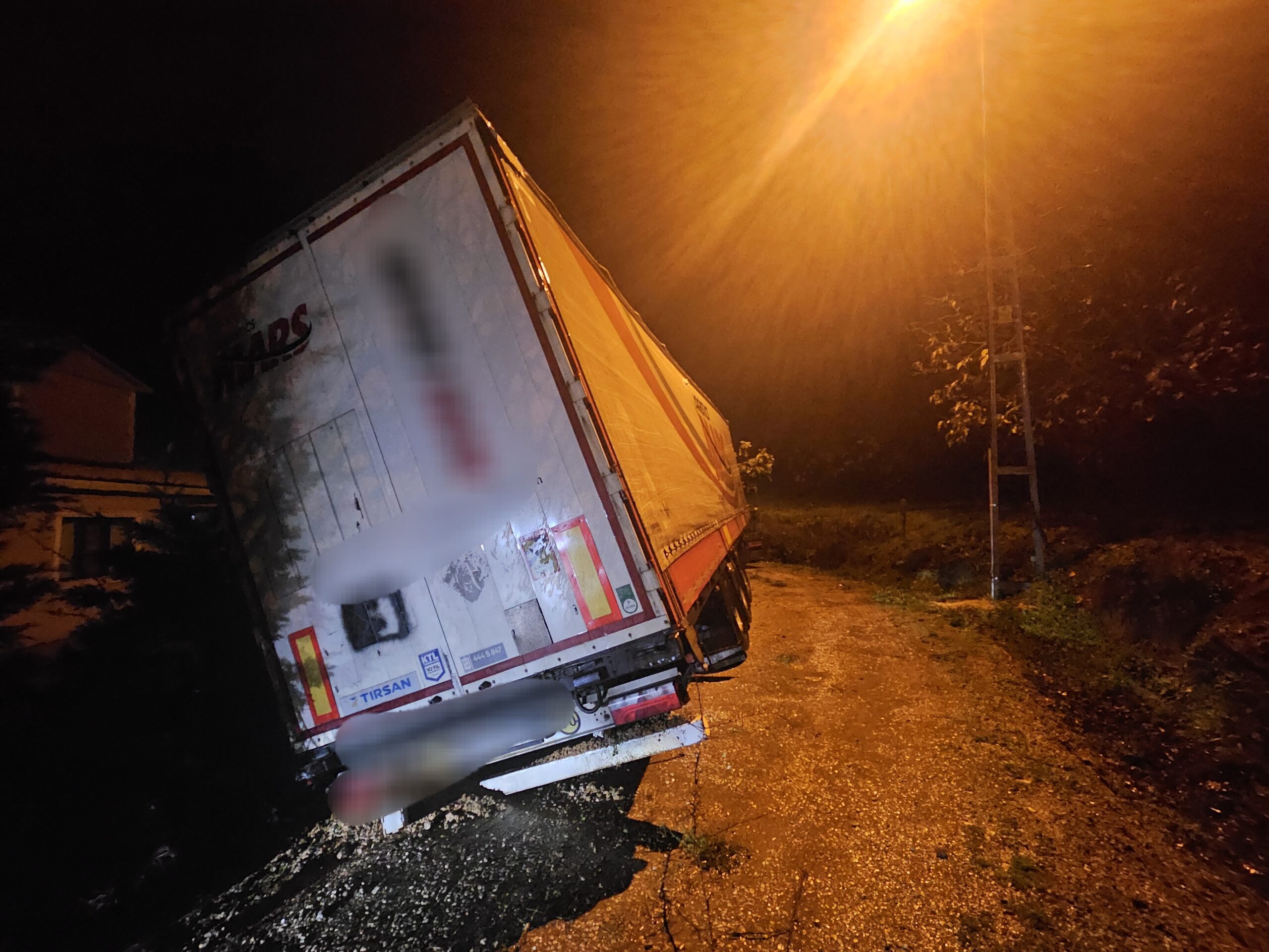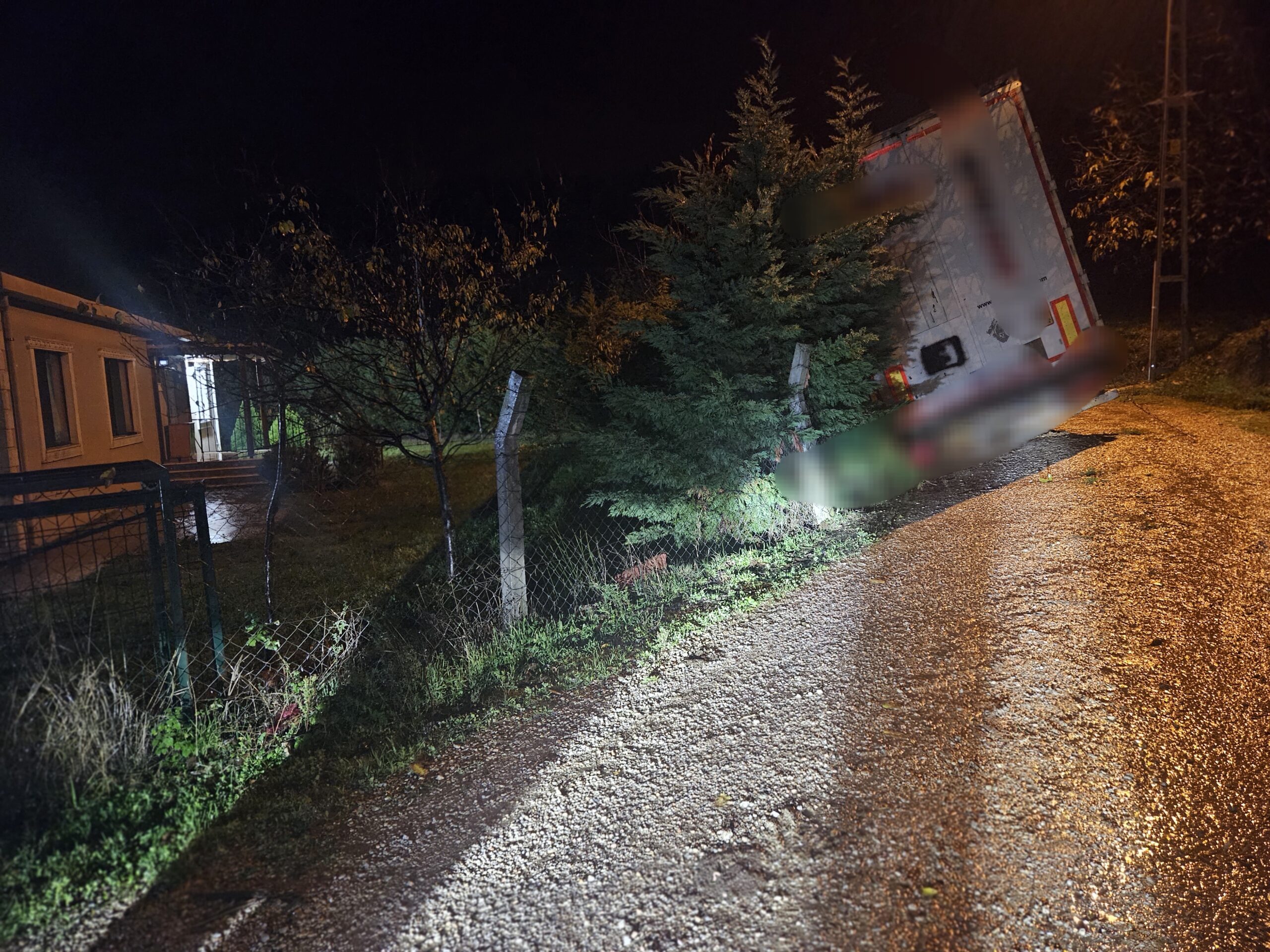 Burada yine navigasyonun yönlendirdiği yolu takip eden sürücü, tırı bir arazi yoluna soktu ve yolun arazi yolunun viraj olduğu bir noktadan dönerken dorseyi bir bağ evinin bahçesine doğru kaydırdı.