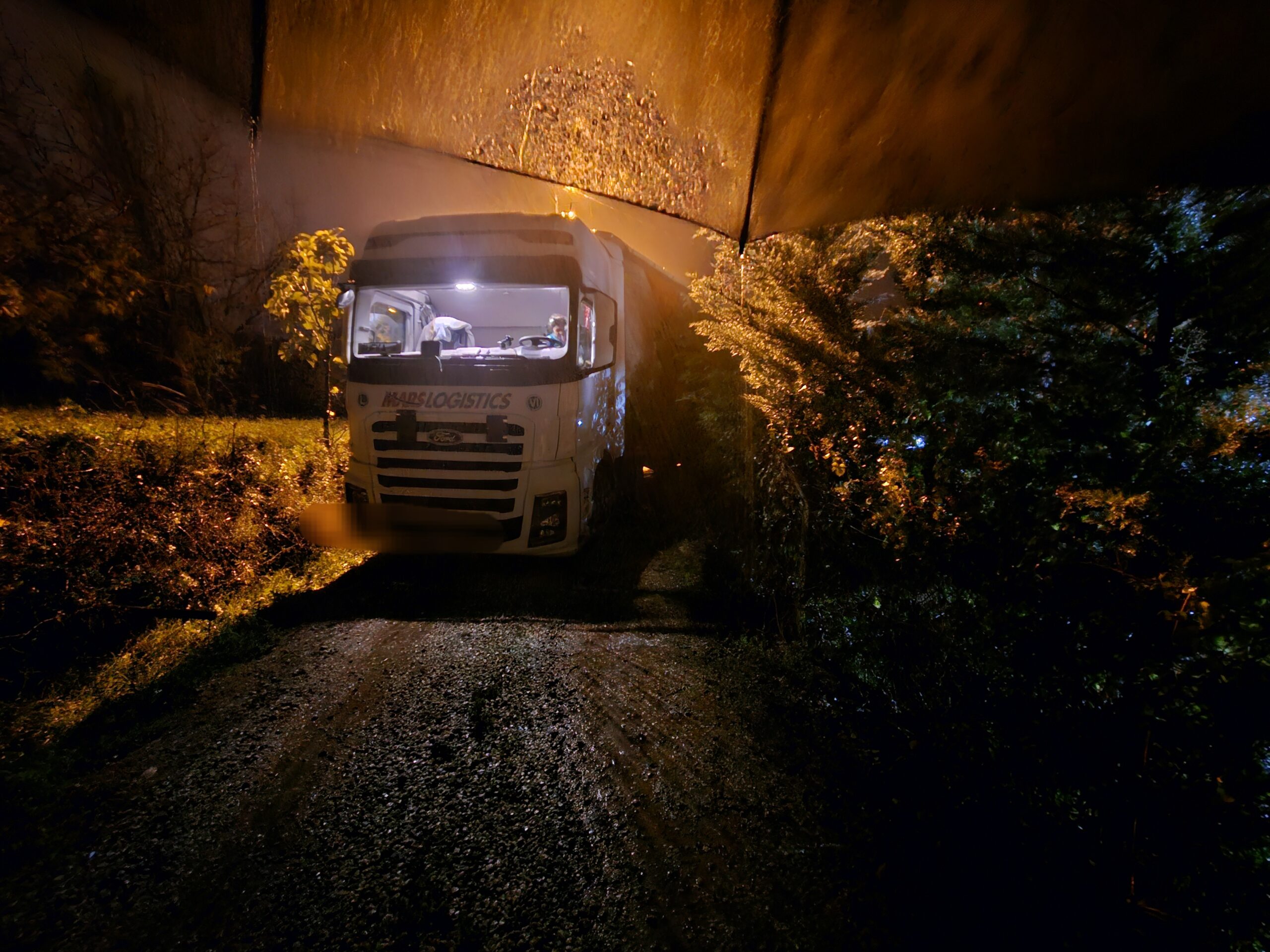 Navigasyona güvenerek yalnış yola giren yabancı uyruklu tır şoförü ise olayın ardından büyük şok yaşadı.