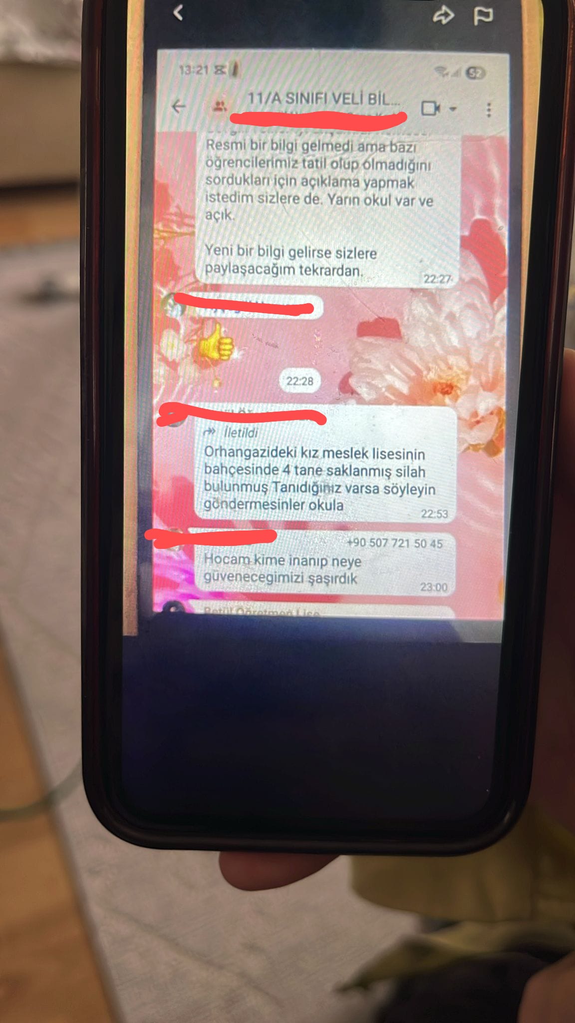 Özellikle Erenler Kız Meslek Lisesi bahçesinde gizlenmiş silahlar bulunduğu ve Orhangazi İmam Hatip Ortaokulu’nun hedef alınacağı yönündeki mesajlar, veliler arasında büyük panik yarattı.
