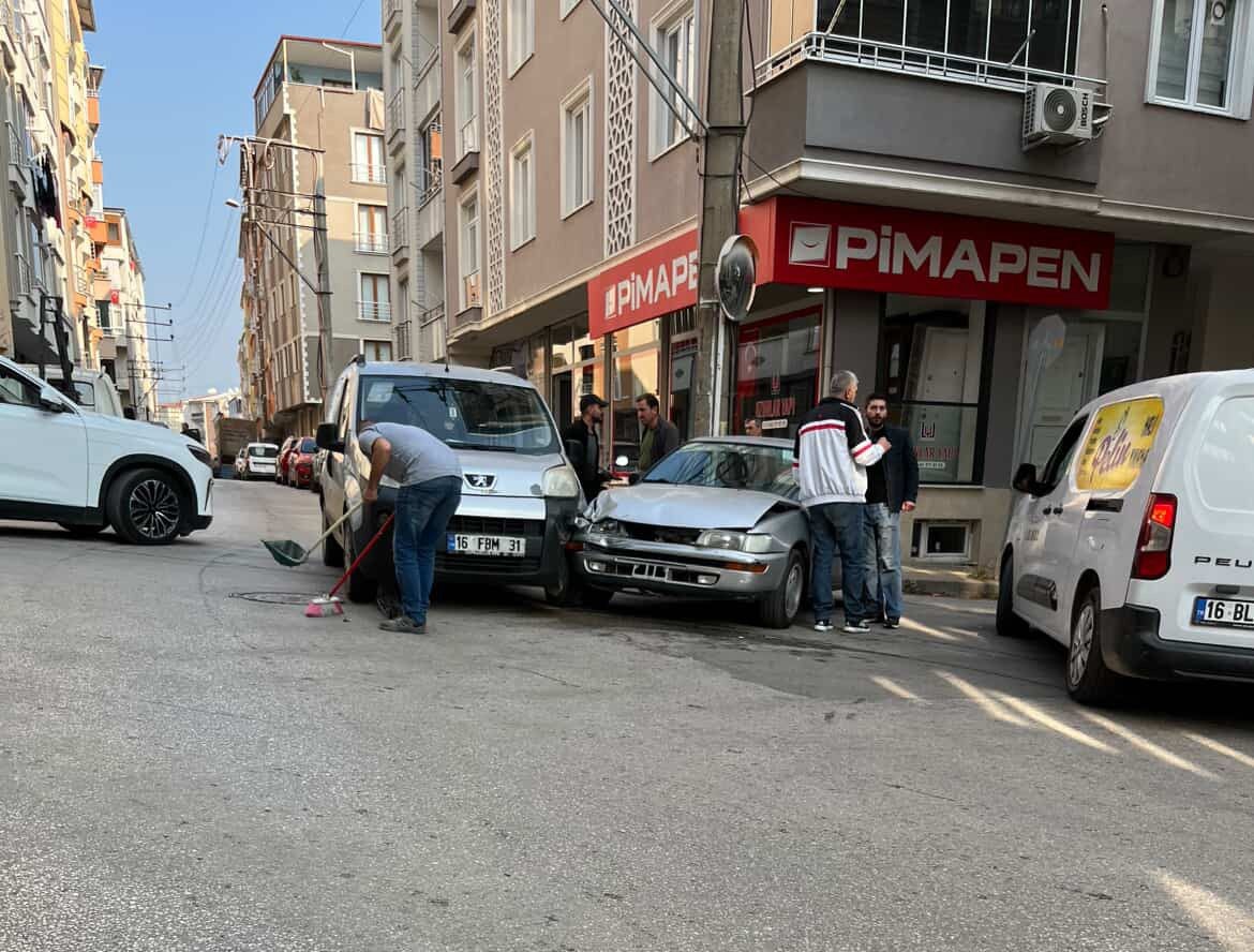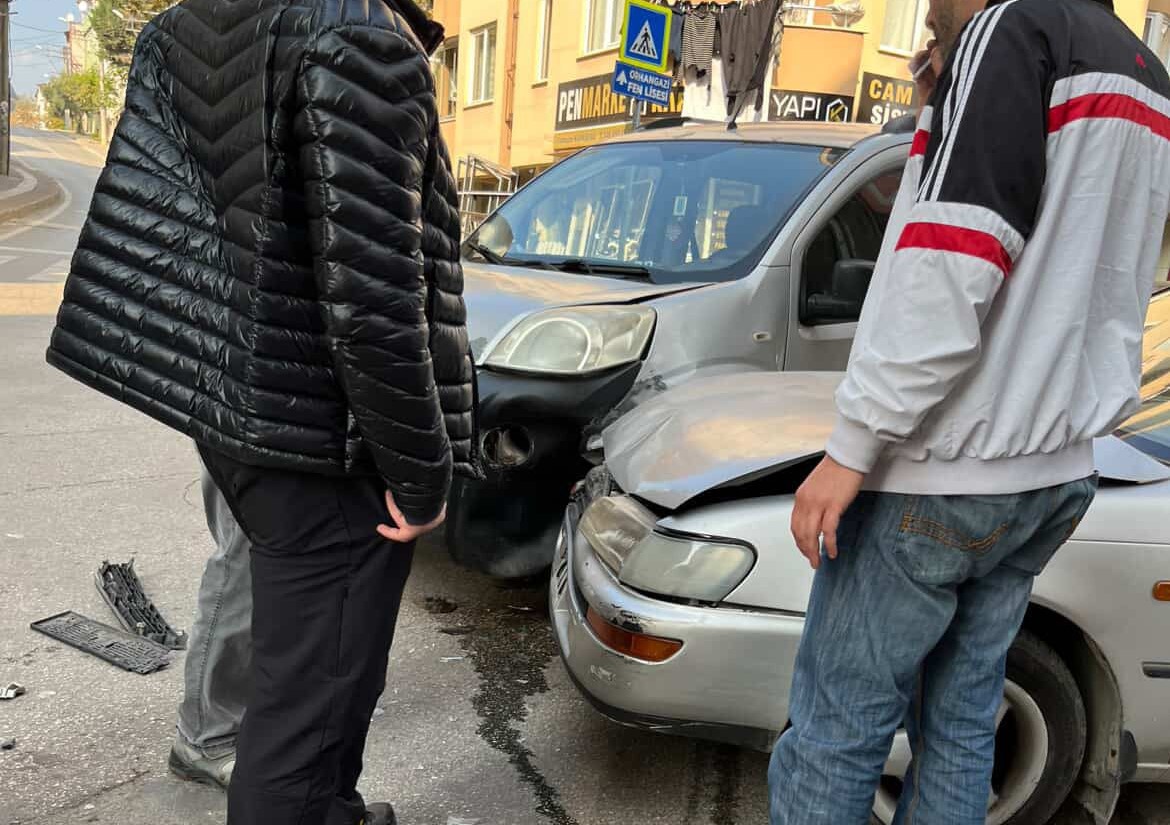 Bursa'nın Orhangazi ilçesinde meydana gelen trafik kazasında iki araç, caddelerin