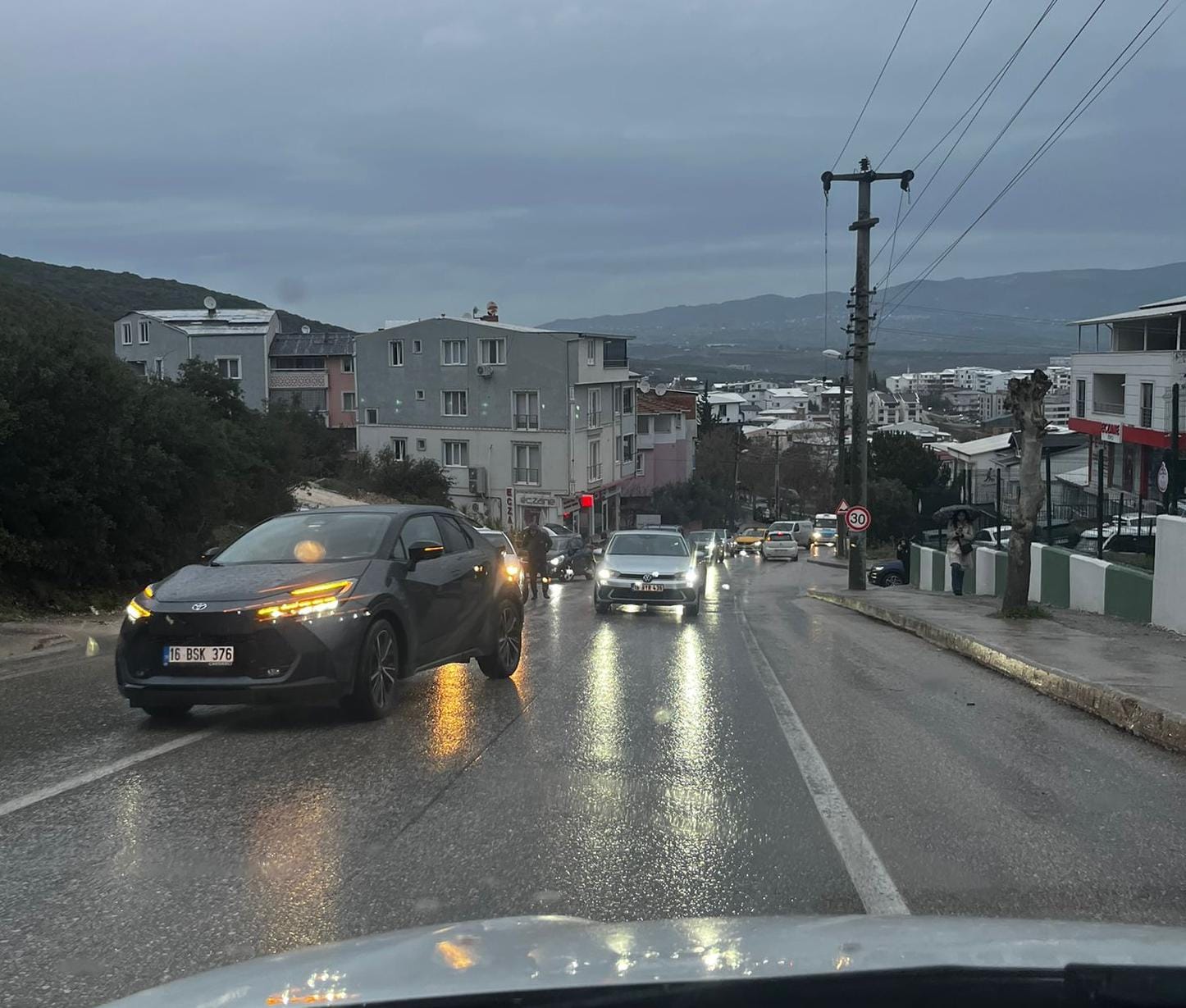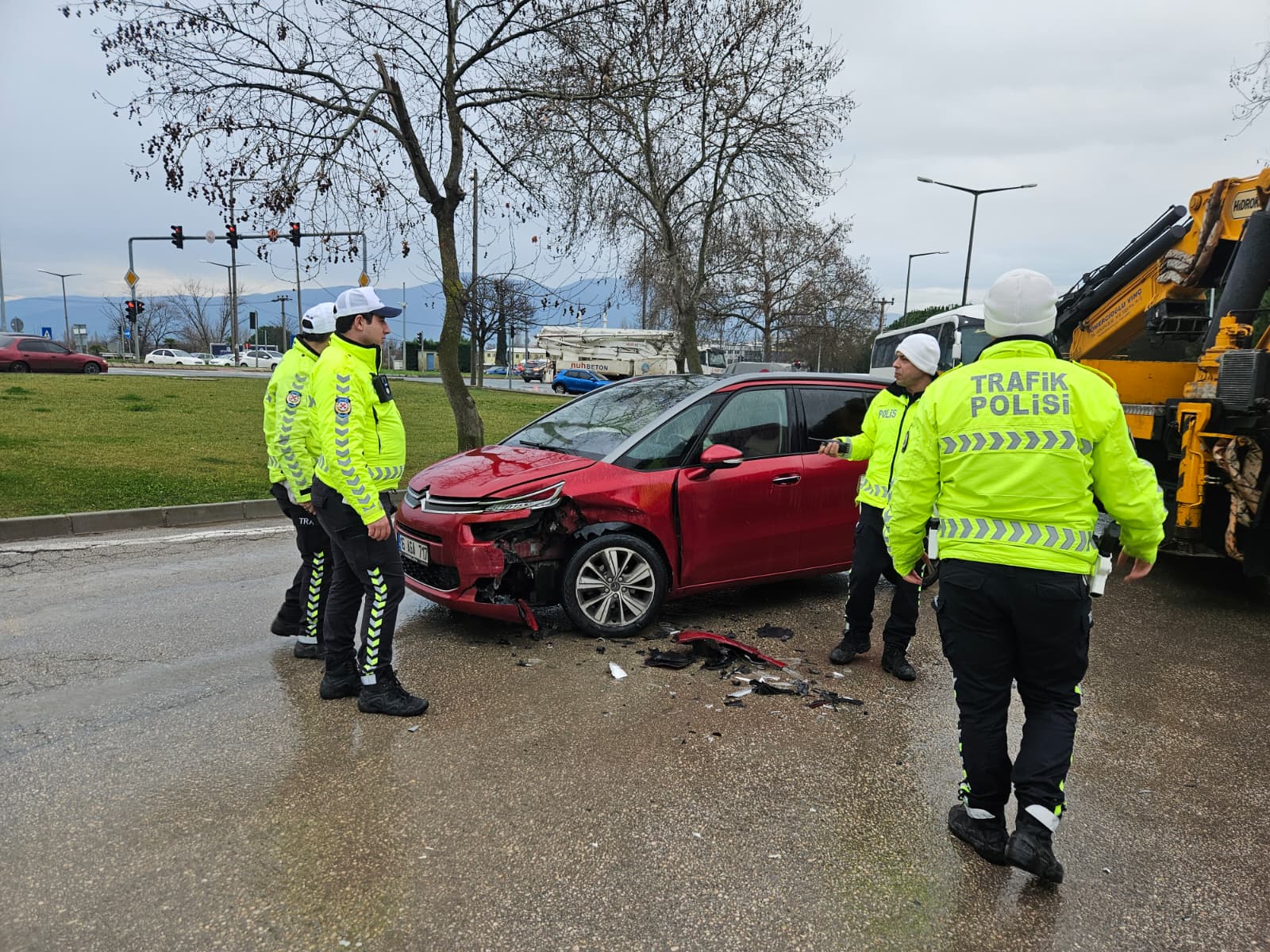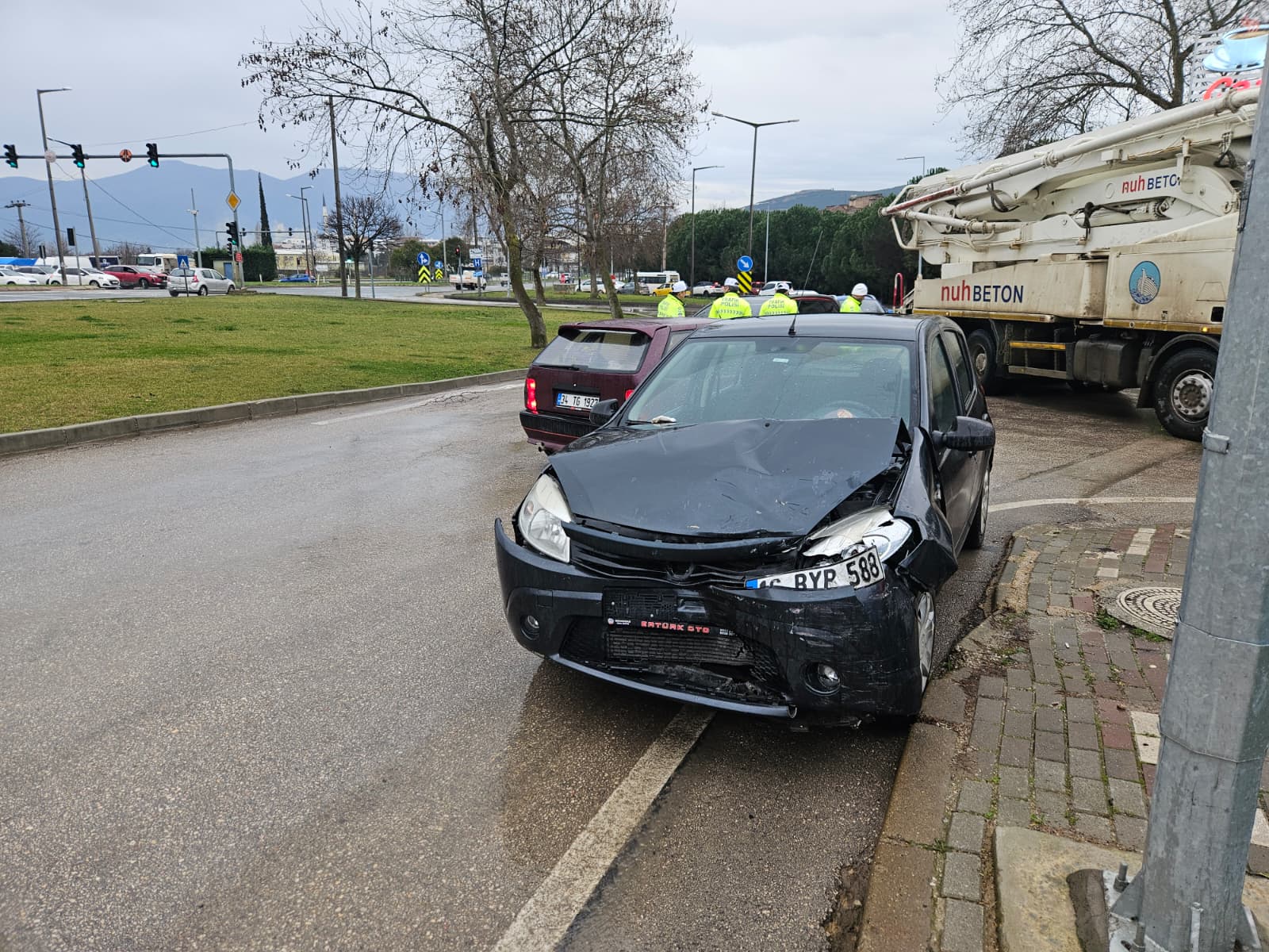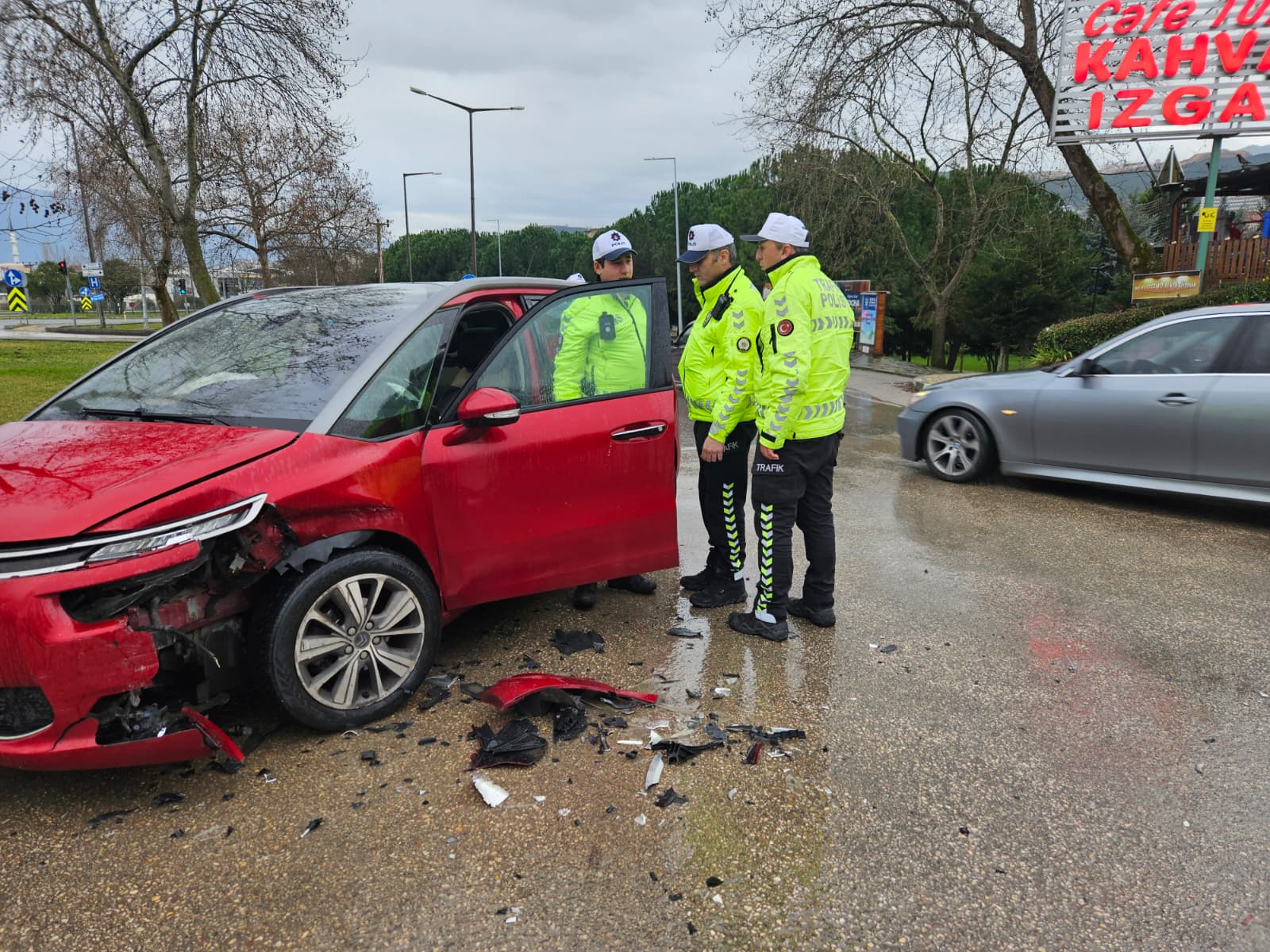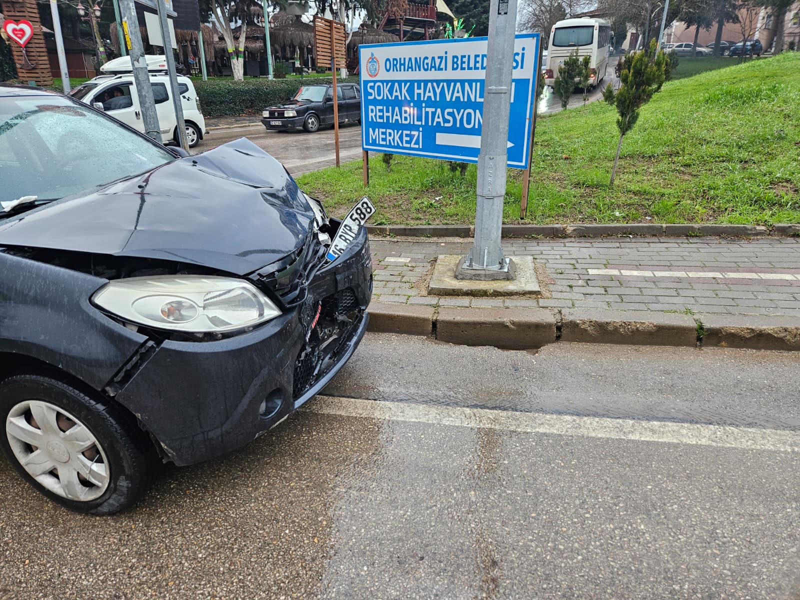 Sızan mazot, yağışla birlikte yolu kaygan hale getirdi ve durum böyle olunca orkent bölgesinden ana yola doğru gitmekte olan bir otomobil duramayıp karşı yönden gelen bir otomobil ile çarpıştı. Kazada, her iki araçta biri çocuk olmak üzere iki kişi hafif yaralanırken, araçlarda maddi hasar meydana geldi.