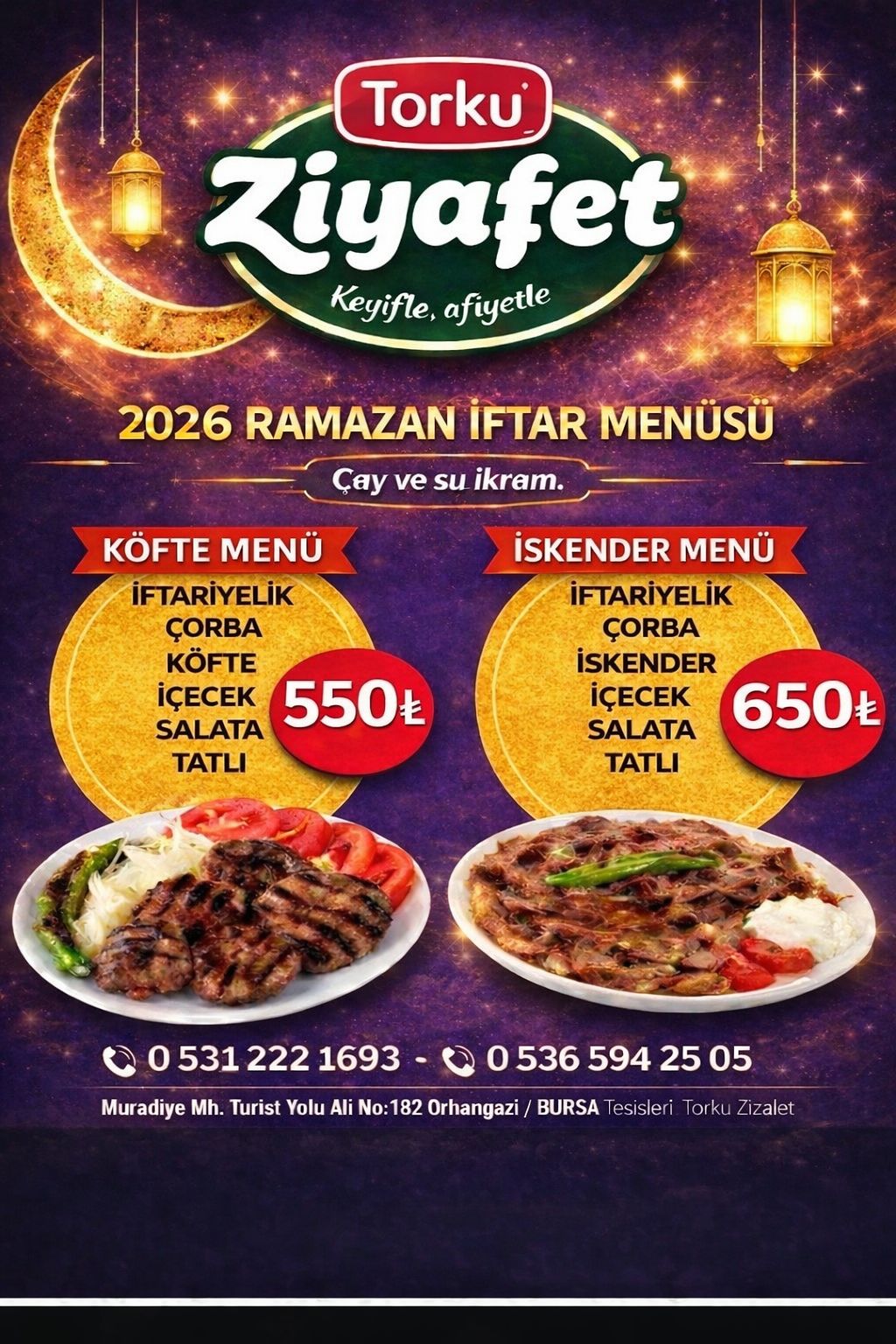 Orhangazi’de yılların tecrübesi Sakallı Tesislerinde, Torku Ziyafet olarak Bu Ramazan ayında da  sevdiklerinizle kuracağınız en sıcak sofralar için biz hazırız.
