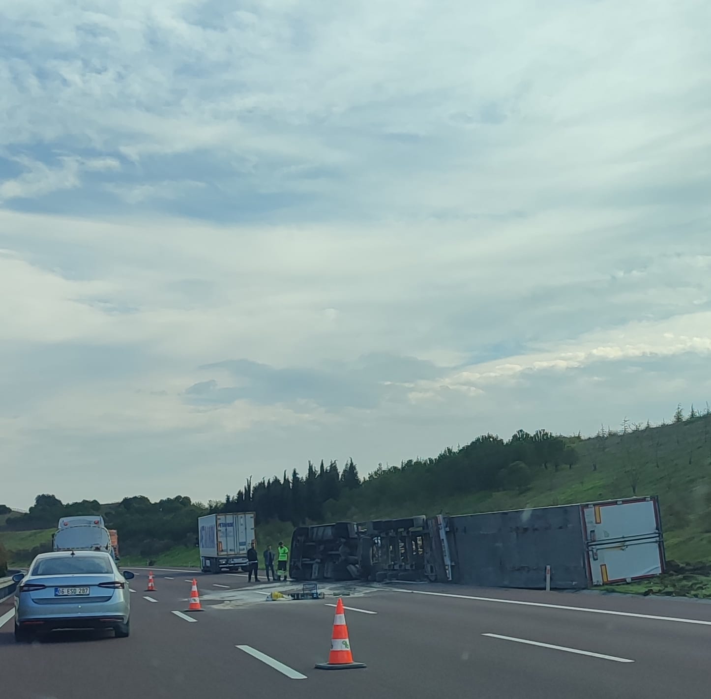 Yaşanan kaza sonrası otoyol jandarması kaza yerinde güvenlik önlemi alırken, sürücü ise kazadan yara almadan kurtuldu.