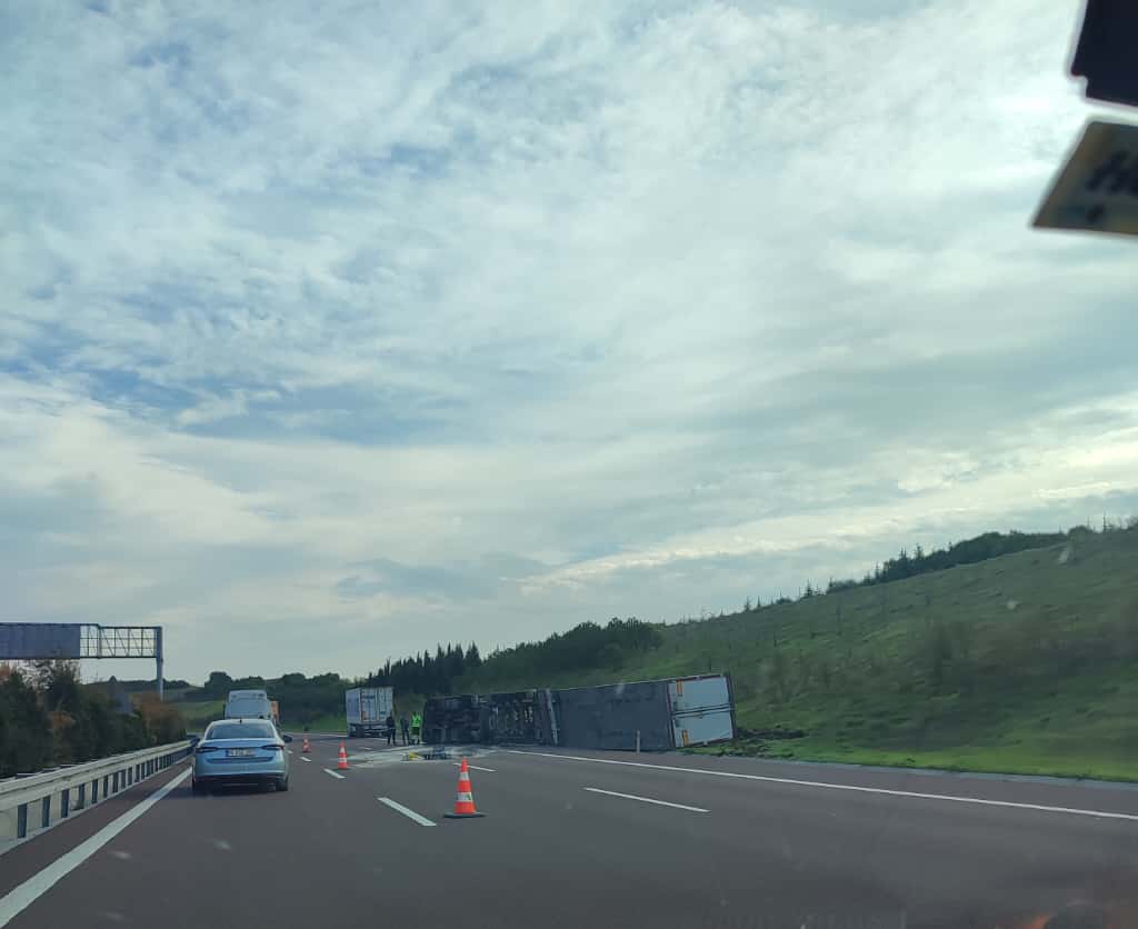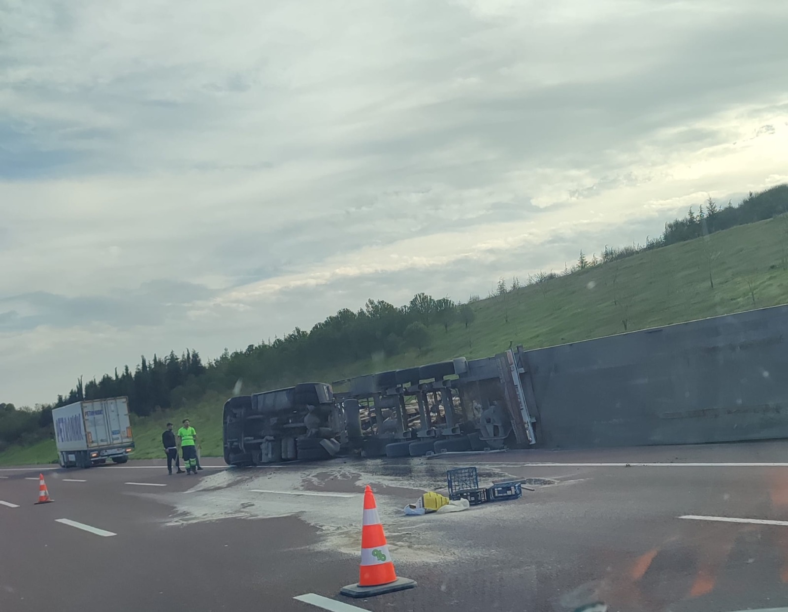 Kaza, bugün saat 11.00 sıralarında Gebze – Orhangazi – İzmir otoyolu İstanbul istikameti Altınova yakınlarında meydana geldi. Alınan bilgilere göre yoğurt yüklü olduğu öğrenilen bir tır sürücünün kontrolünden çıktı ve savrularak yol kenarına devrildi.