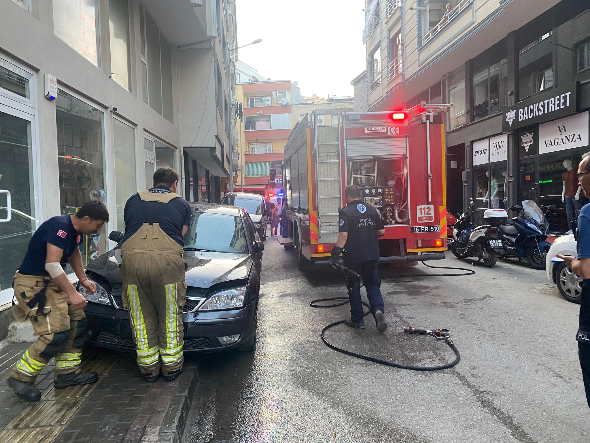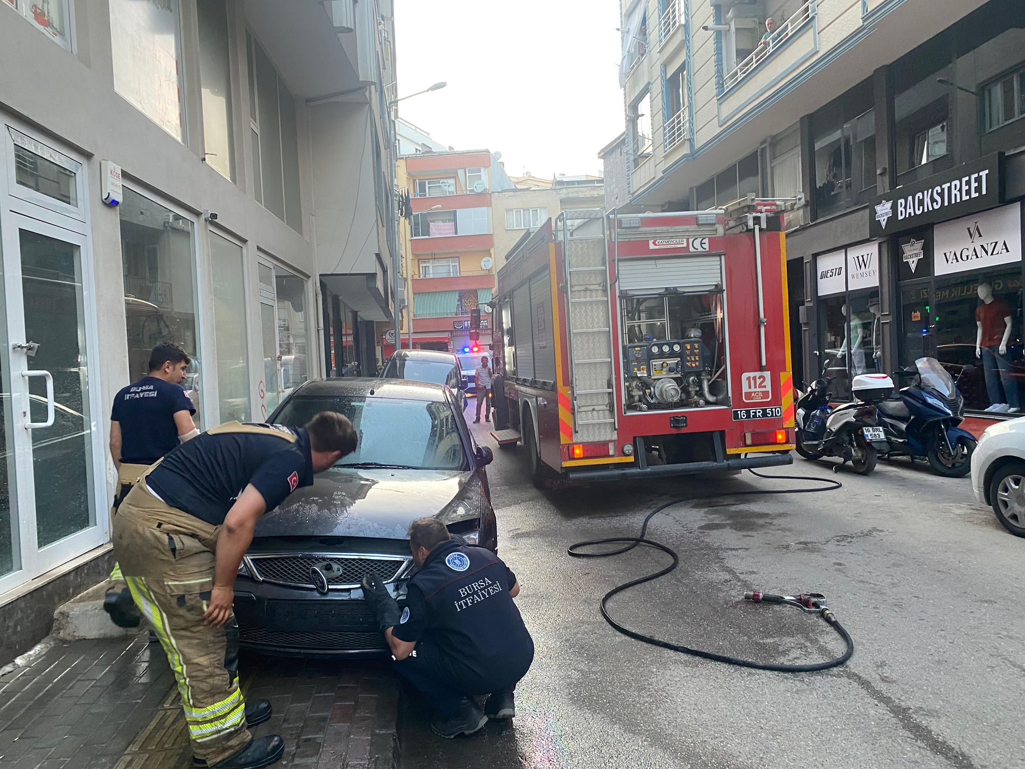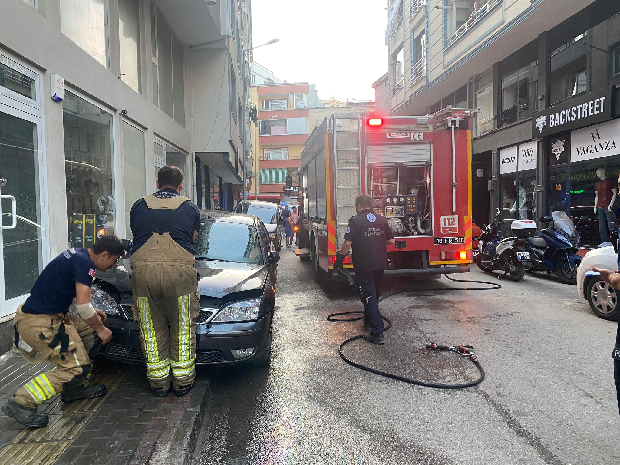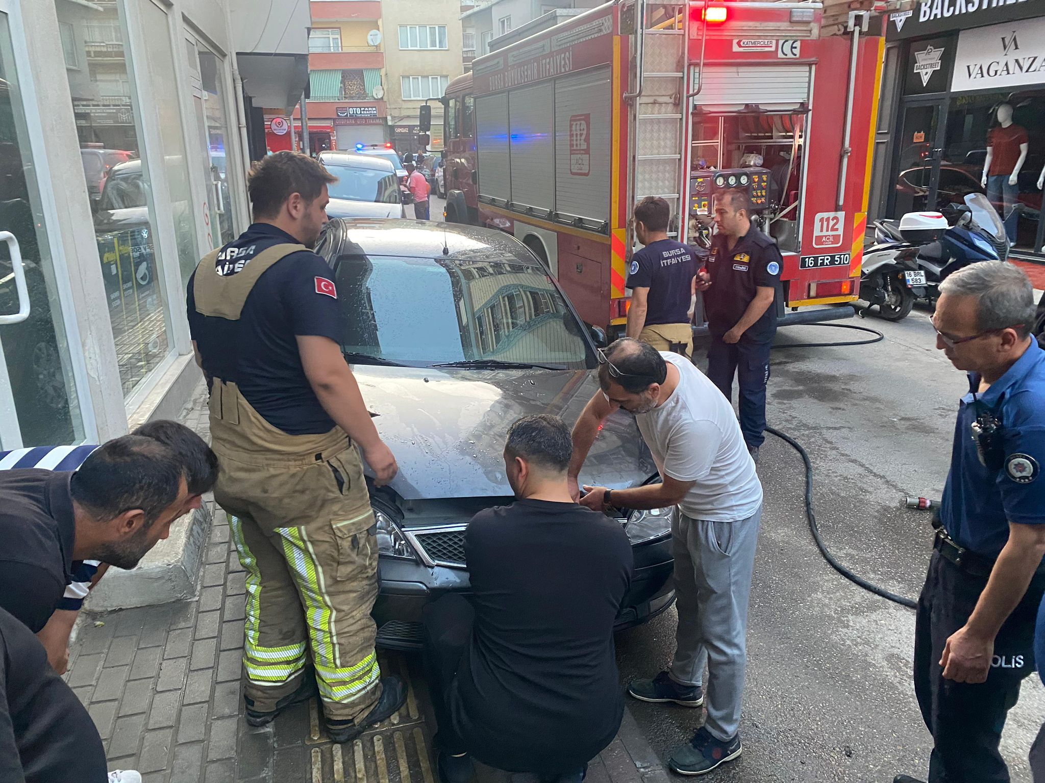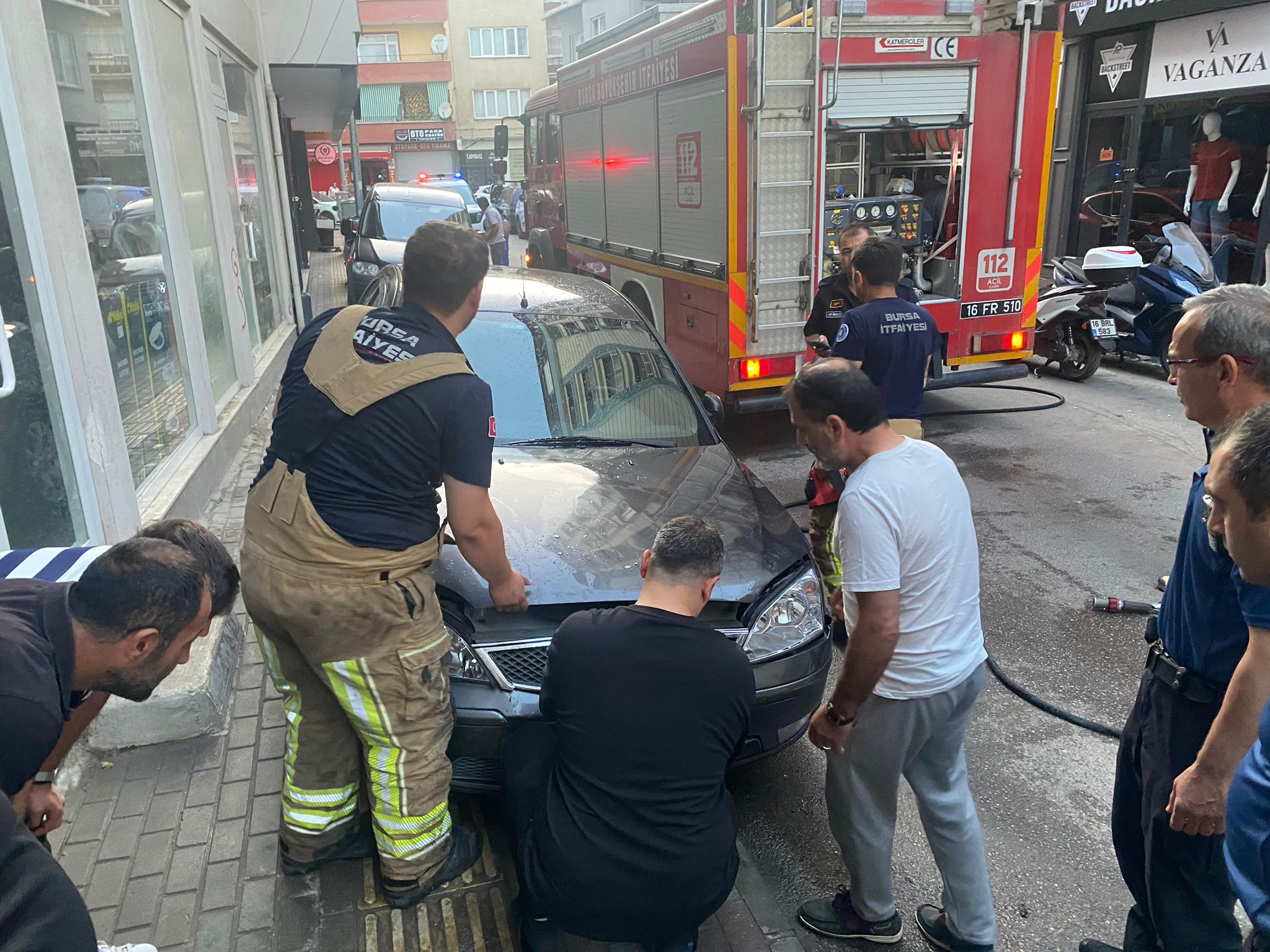 Alınan bilgiye göre sokak üzerinde park halinde bulunan bir otomobilin motor bölümünden bir anda dumanlar çıkmaya başladı.