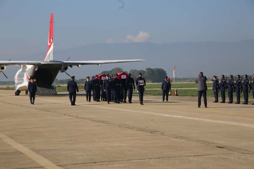İlerleyen saatlerde sisin kalkması ile Balıkesir’den yola çıkan şehitleri taşıyan uçak, Bursa’nın Yenişehir ilçesinde bulunan hava meydan komutanlığı havaalanına geldi.