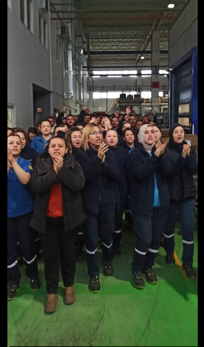 Genel başkanın çağrısı ile bugün Bursa’da Türk Metal sendikası üye fabrikalardaki işçiler vardiya giriş ve çıkışlarında ıslıklar eşliğinde sloganlar atarak işveren tarafı MESS’i protestolarına devam etti.