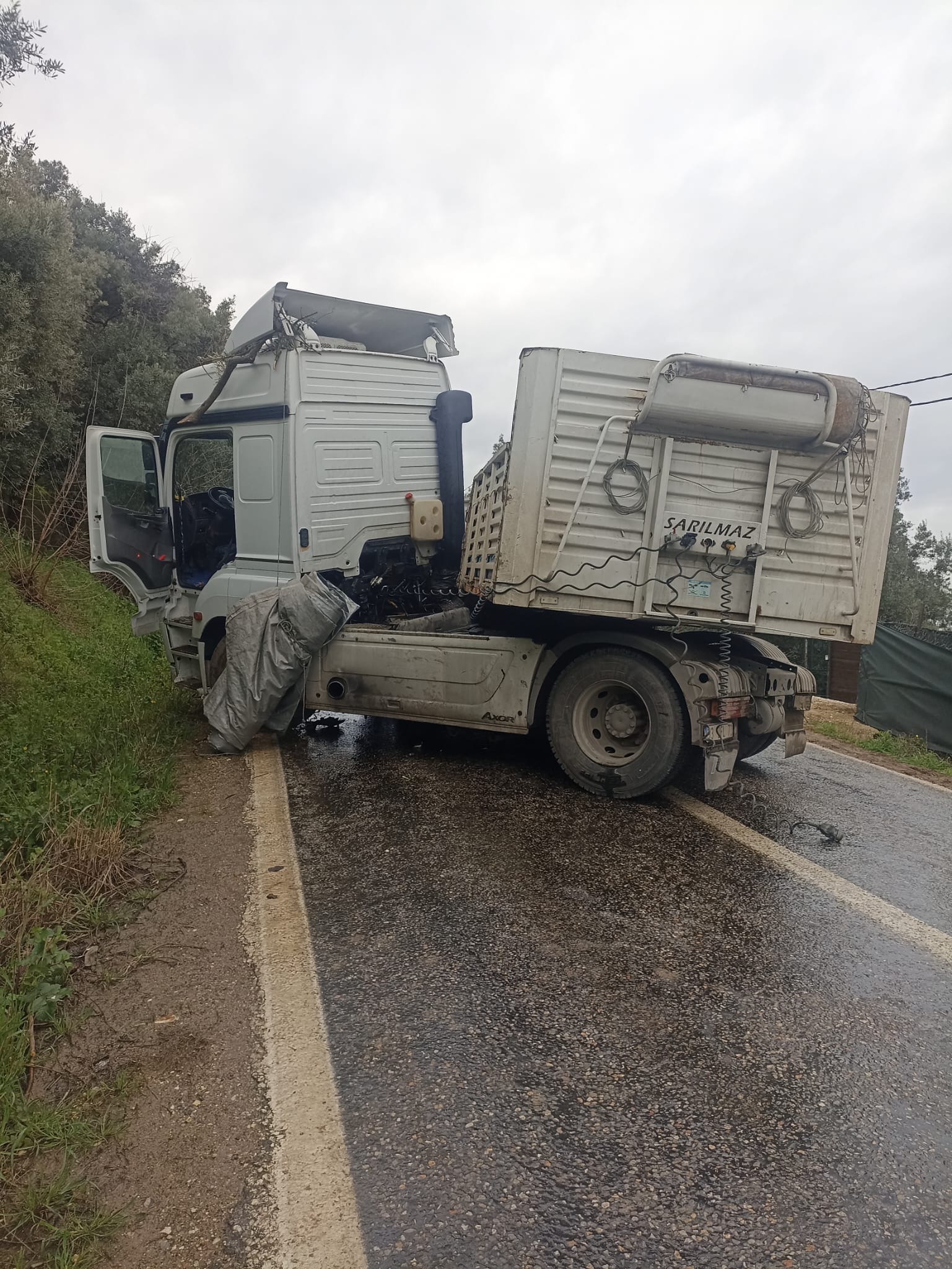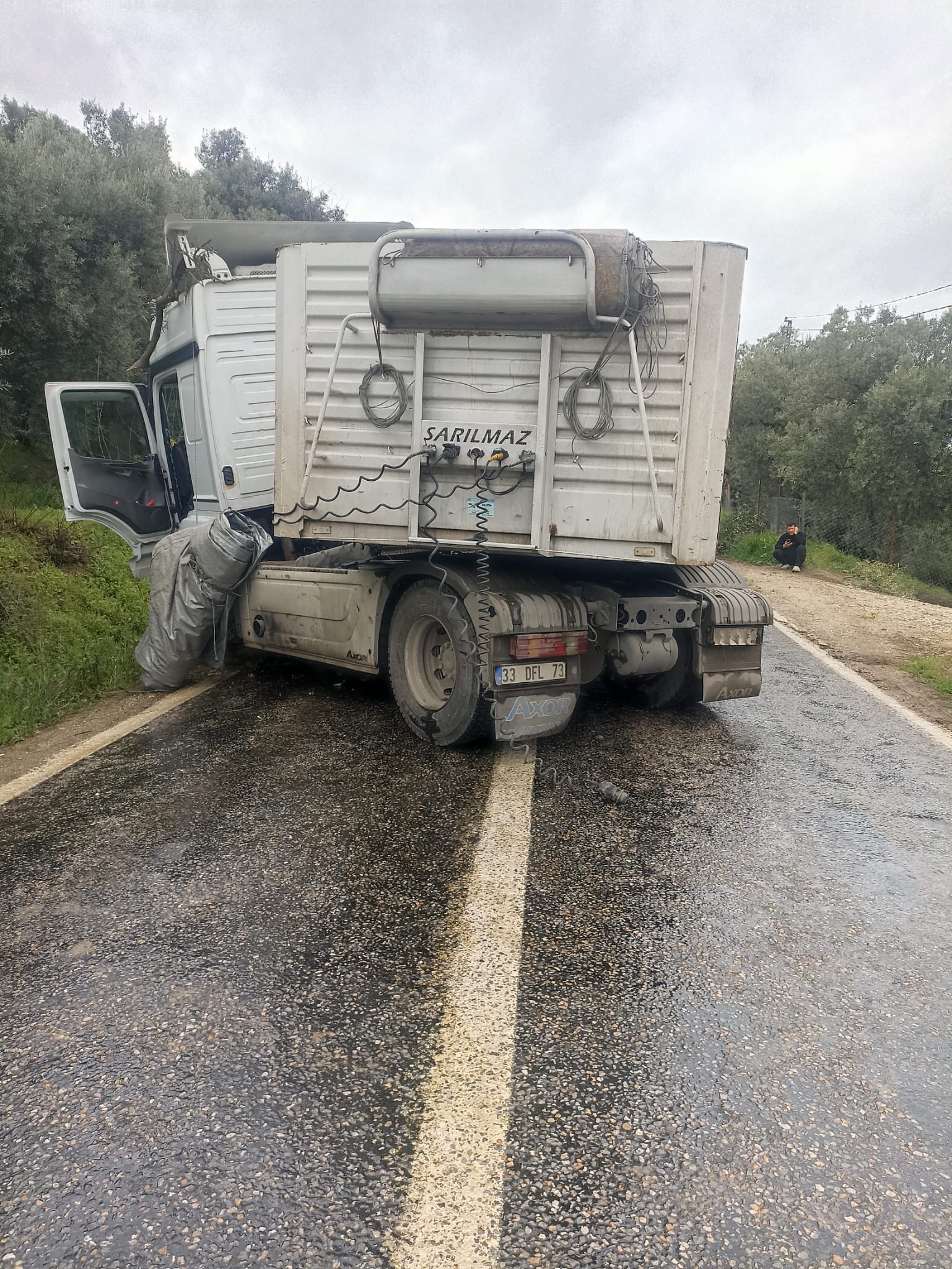 Alınan bilgilere göre İznik yönüne doğru gitmekte olan bir tır, yağış nedeniyle kayganlaşan yolda sürücünün direksiyon hakimiyetini kaybetmesiyle kontrolden çıkarak savruldu ve yol kenarındaki toprak sete çarparak makasladı.