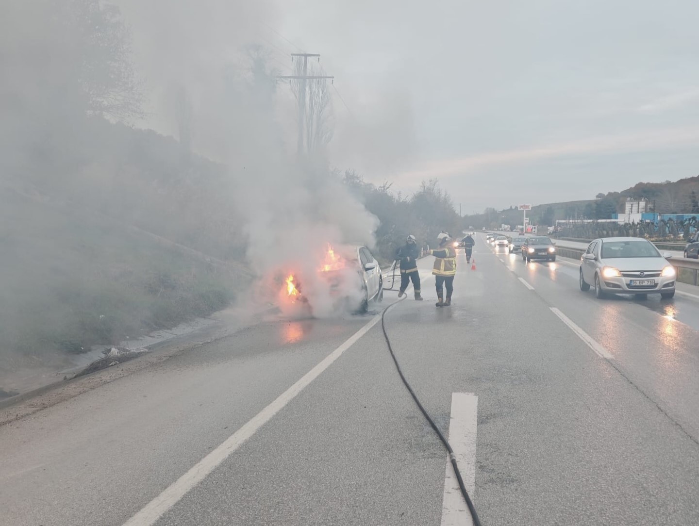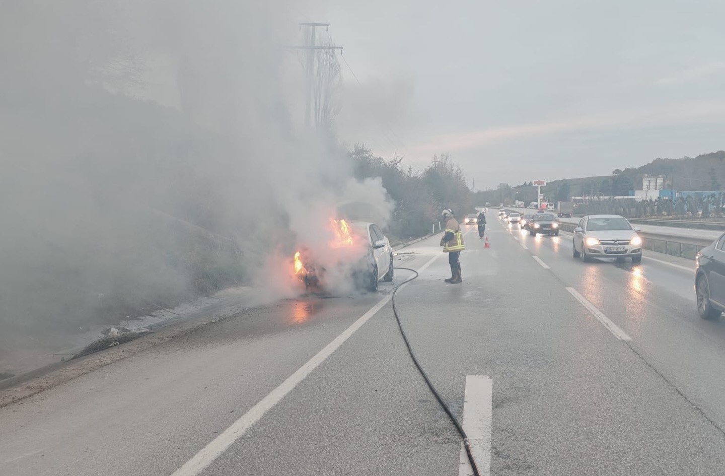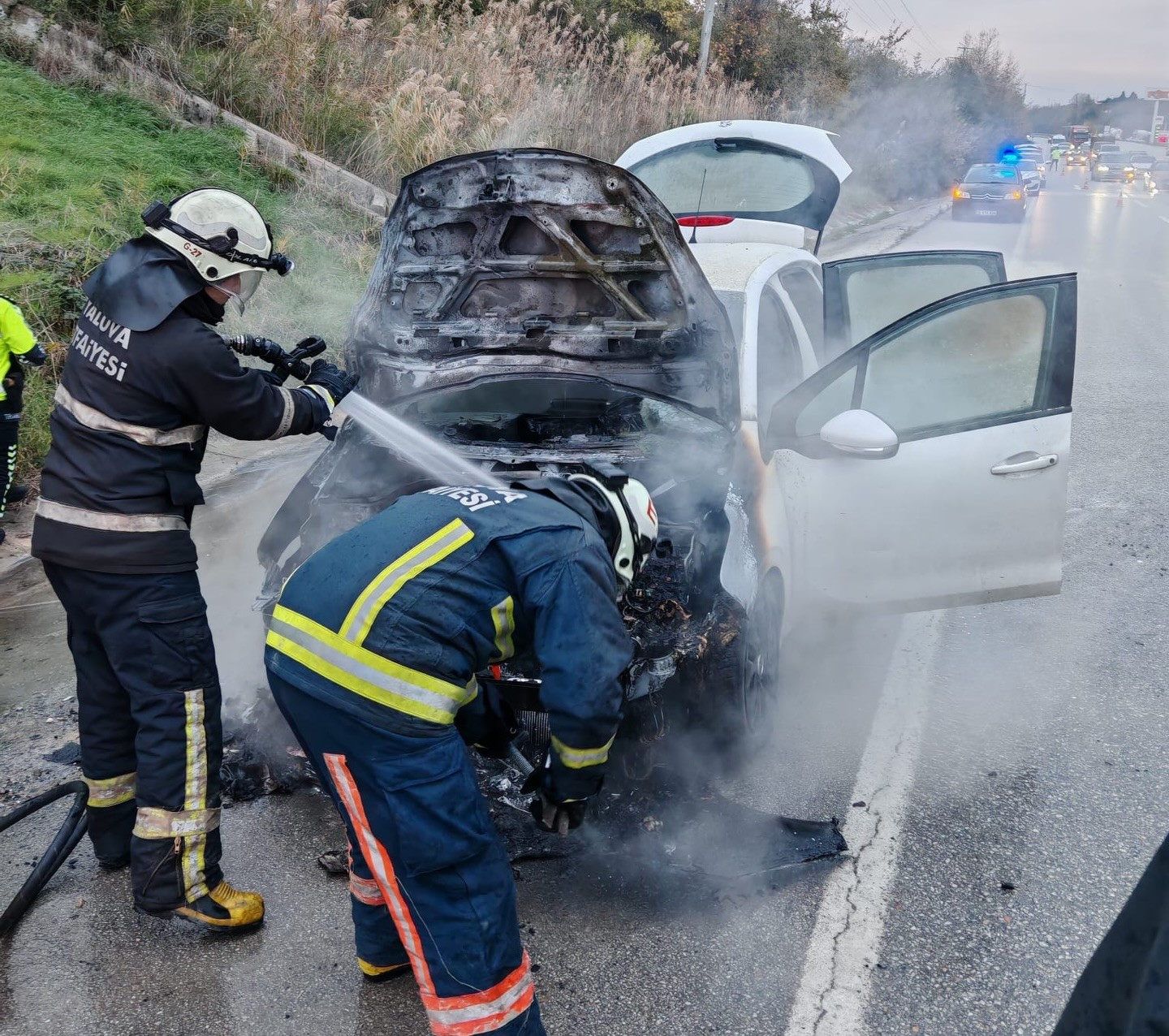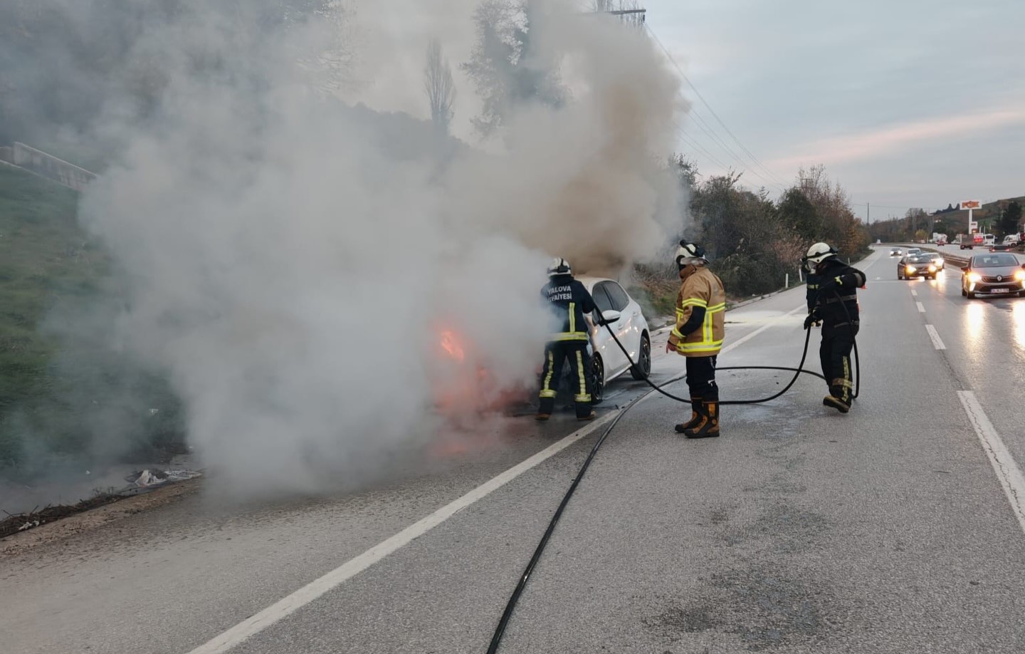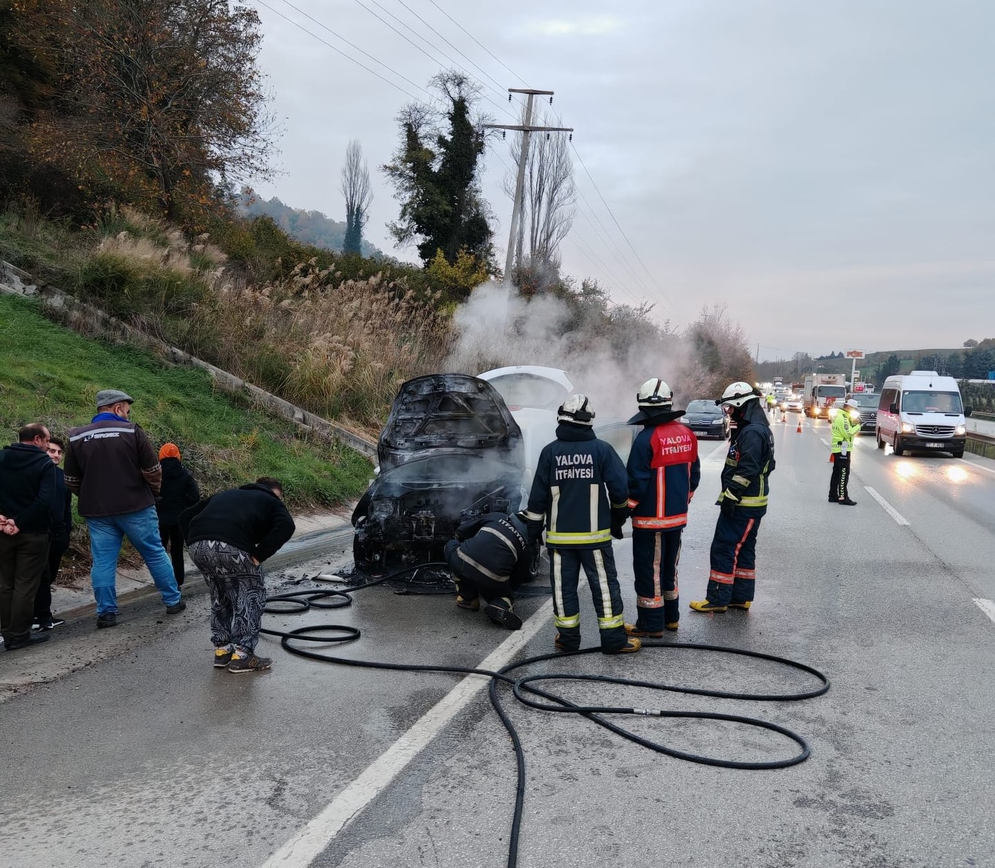 Olay bugün Yalova – Orhangazi yolu üzeri süpürgelik mevkii sepetçioğlu tesisleri önünde meydana geldi. Alınan bilgilere göre Orhangazi yönüne gitmekte olan bir otomobilin motor bölümünden duman ve ardından alevlerin çıktığını gören sürücü aracı yol kenarına çekip yardım istedi.